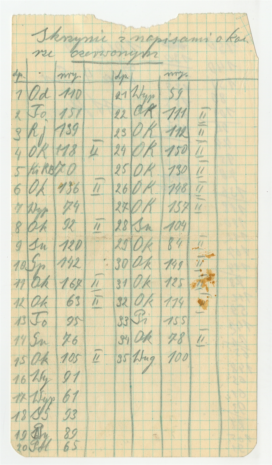 Rękopis - notatka Stefana Krukowskiego z wykazem skrzyń do transportu z 1938 i 1939 roku (cd)