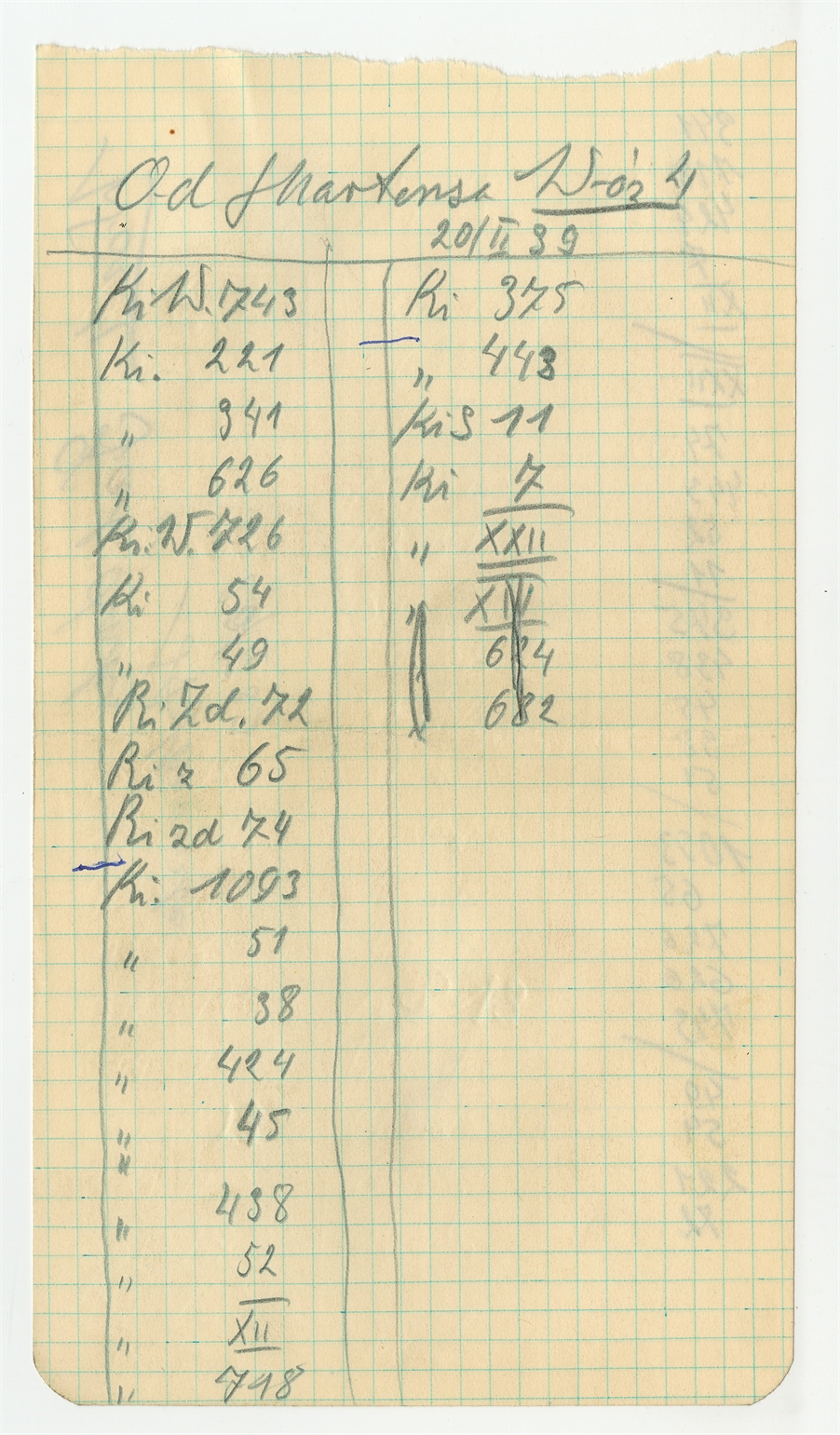 Rękopis - notatka Stefana Krukowskiego z wykazem skrzyń do transportu z 1938 i 1939 roku (cd)