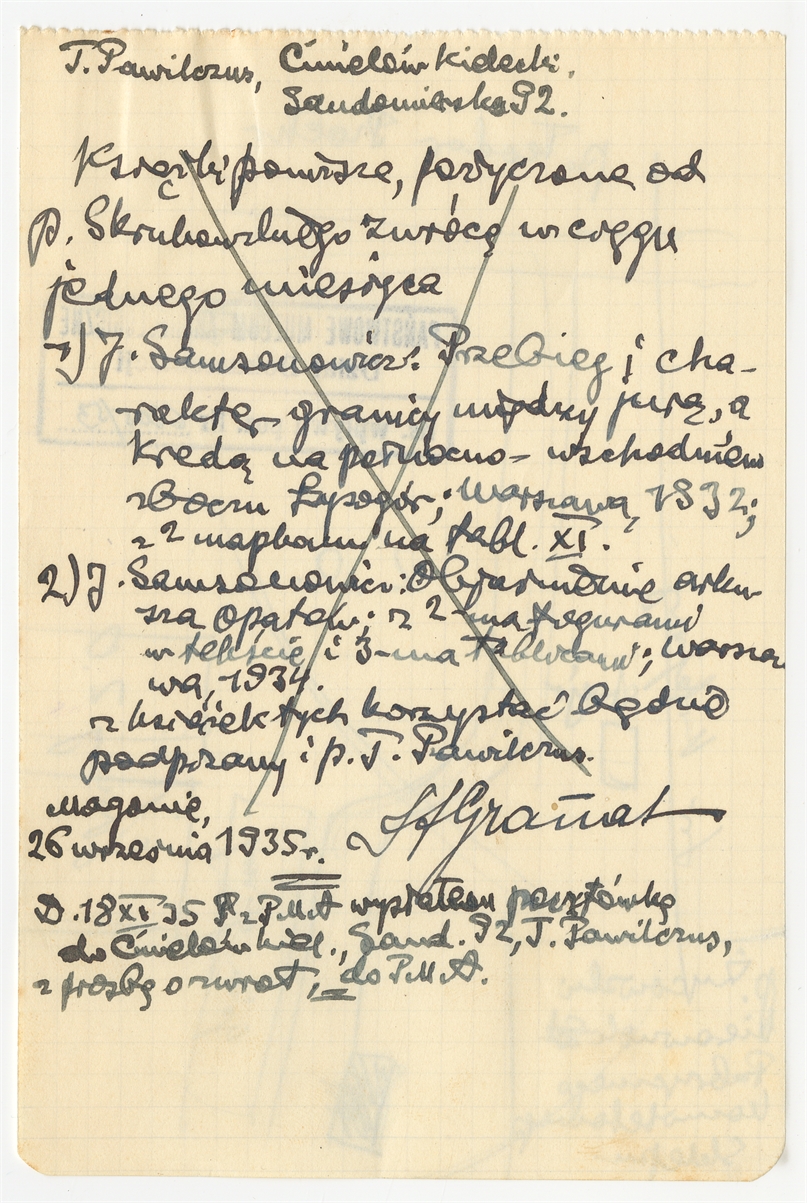 Rękopis - notatka Stefana Krukowskiego zawierająca rewers na książki z dnia 26 września 1935 roku podpisany ręką NN