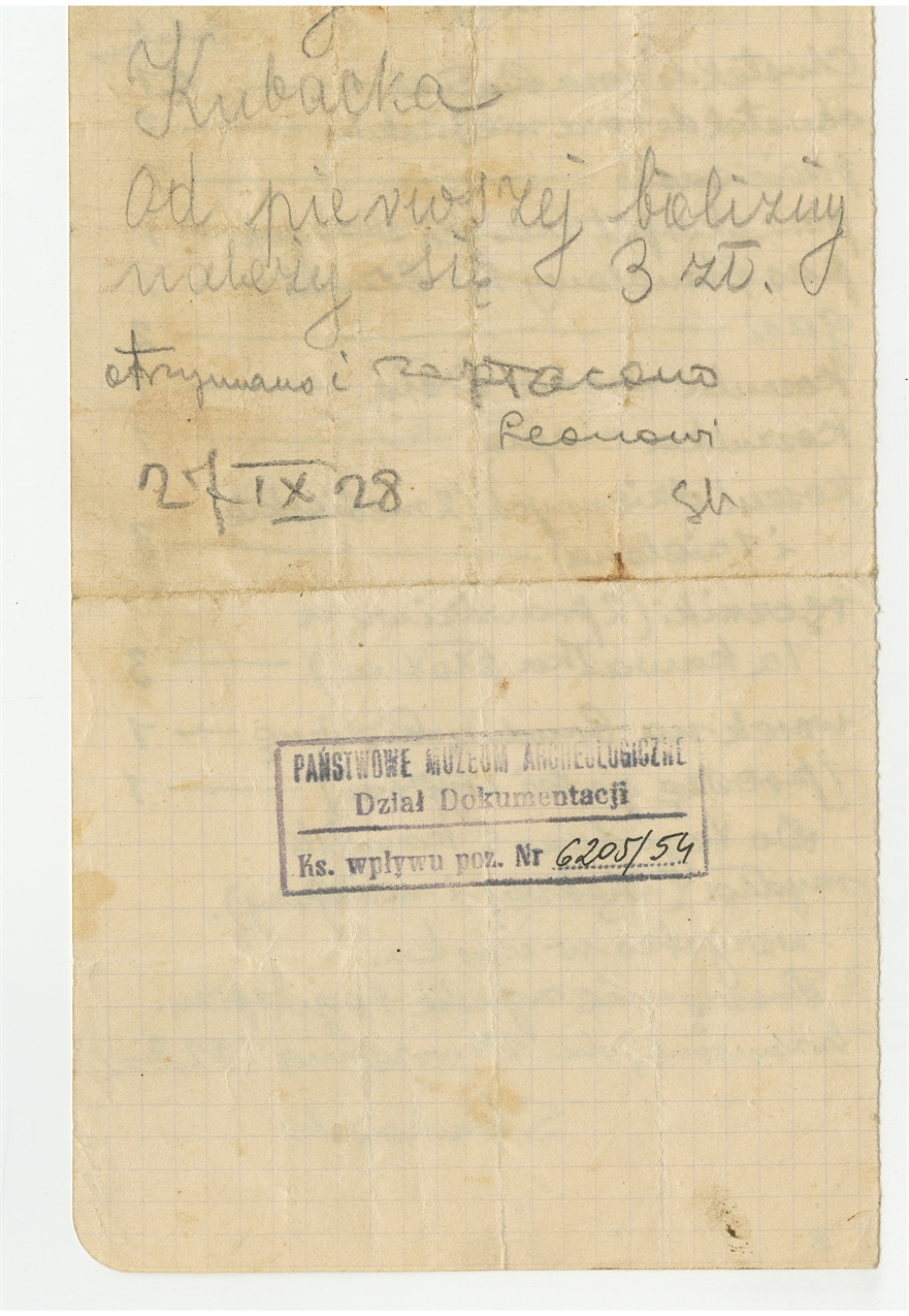 Rękopis - notatka Stefana Krukowskiego ze spisem rzeczy do prania z dnia 24 września 1928 roku.