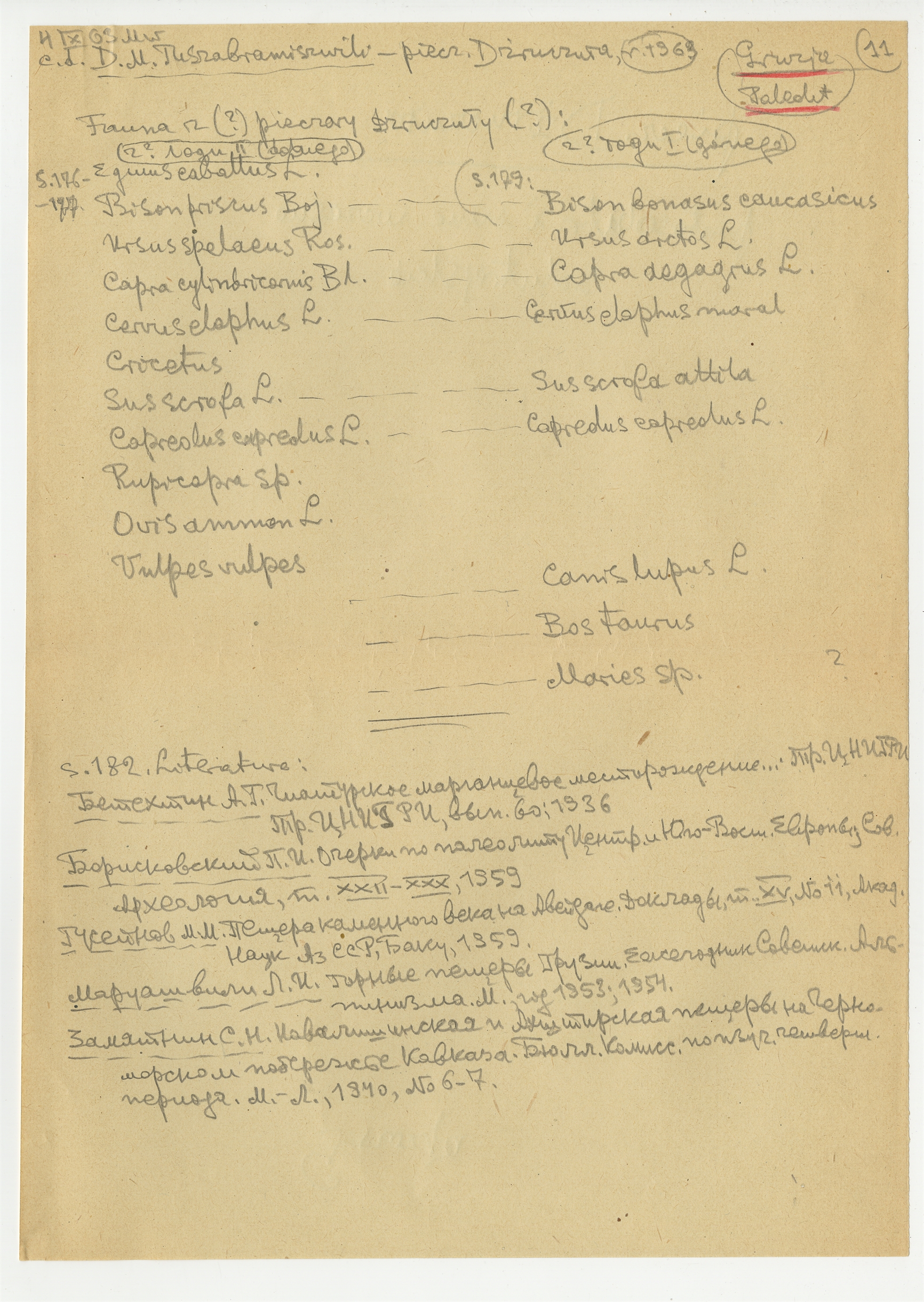 Rękopis - notatki i wypisy Stefana Krukowskiego z dnia 4 IX [19]63 roku dotyczące paleolitu Gruzji z publikacji rosyjskich. Strona 11