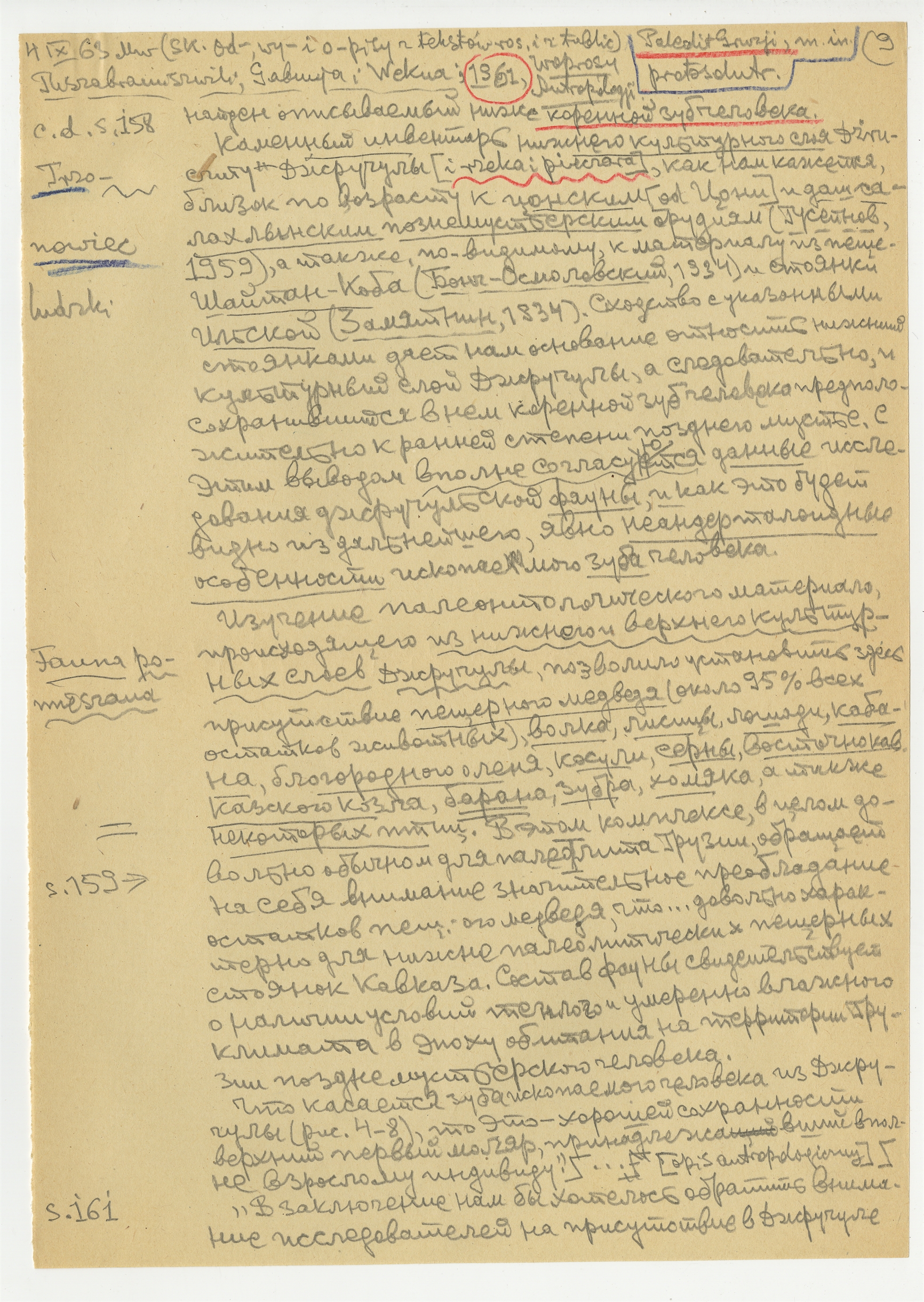 Rękopis - notatki i wypisy Stefana Krukowskiego z dnia 4 IX [19]63 roku dotyczące paleolitu Gruzji z publikacji rosyjskich. Strona 9