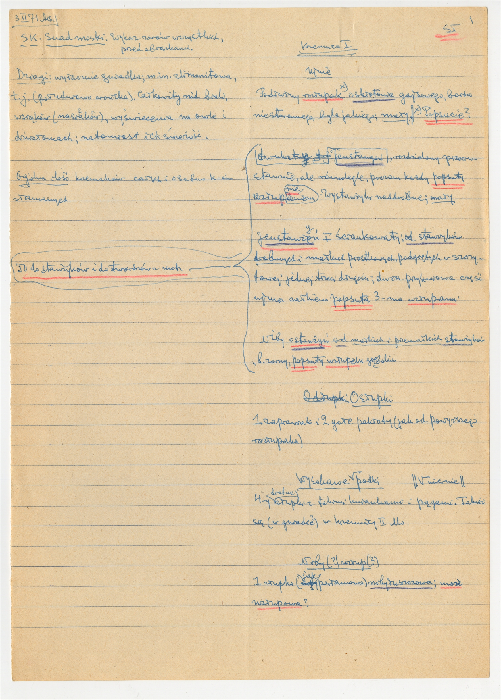 Rękopis - notatki prof. Stafana Krukowskiego 3 II 71 - "SK. Snad moski…" autorska numeracja stron 1
