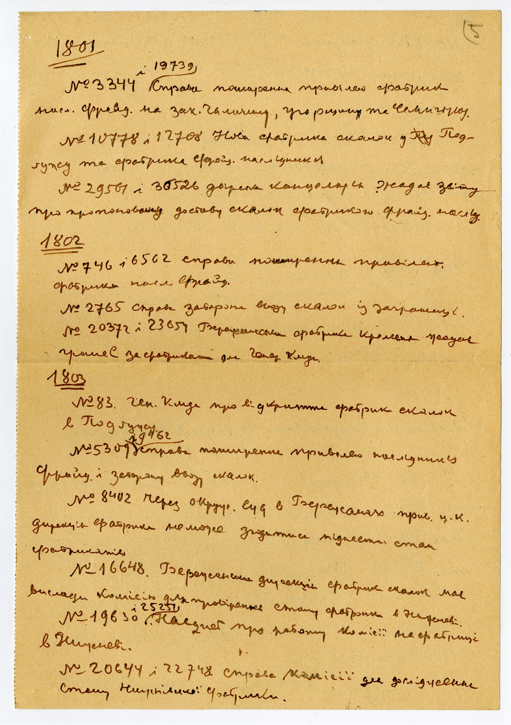 Rękopis - notatki prof. W. Ohonowskiego - wypisy zasobów Gubernialnego Archiwum we Lwowie. Ręką S. Krukowskiego komentarze do notatek i numeracja stron. Strona 5