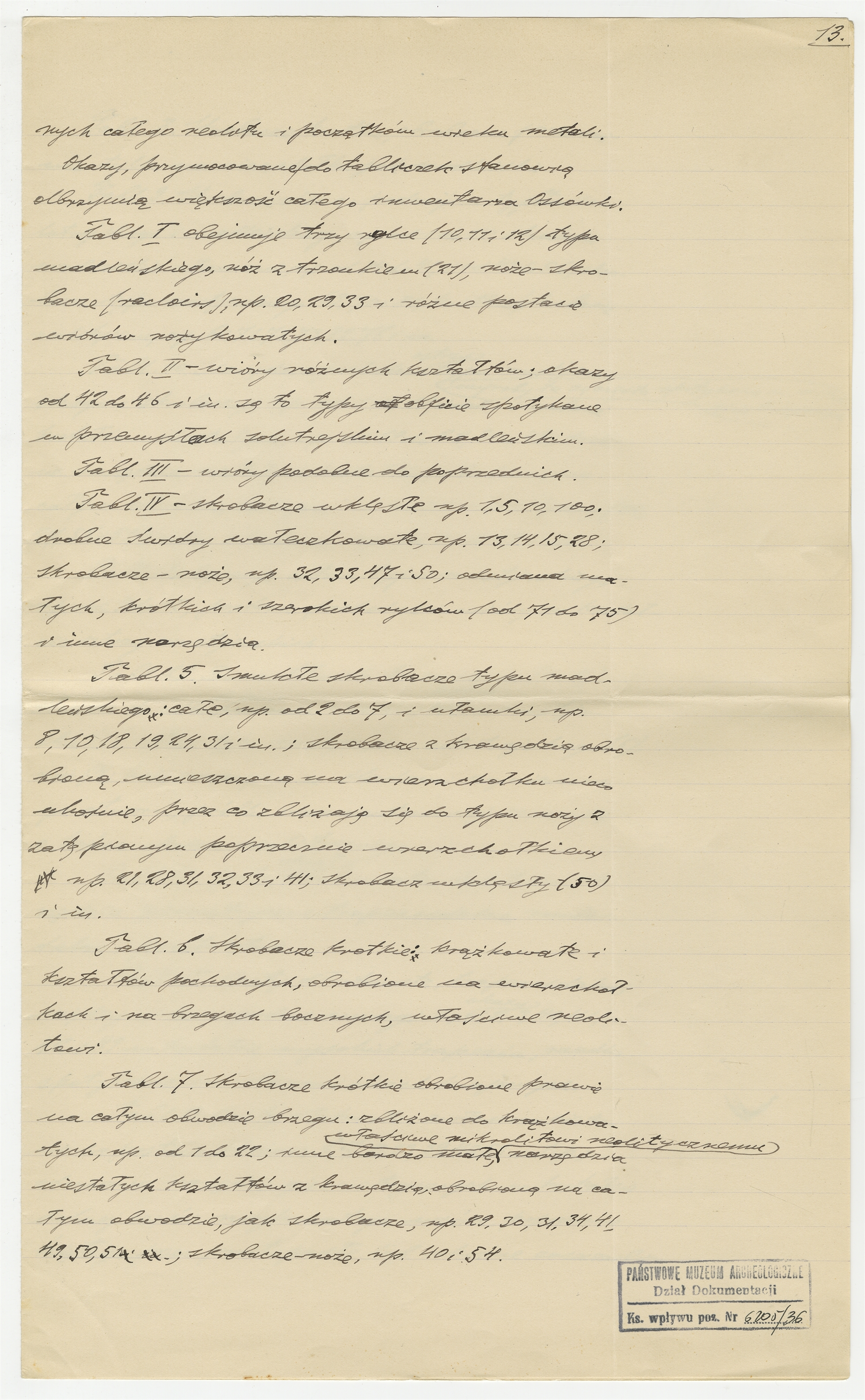 Rękopis - notatki Stefana Krukowskiego - "Materiały do Katalogu Muzealnego" - szafa N4. Strona 13