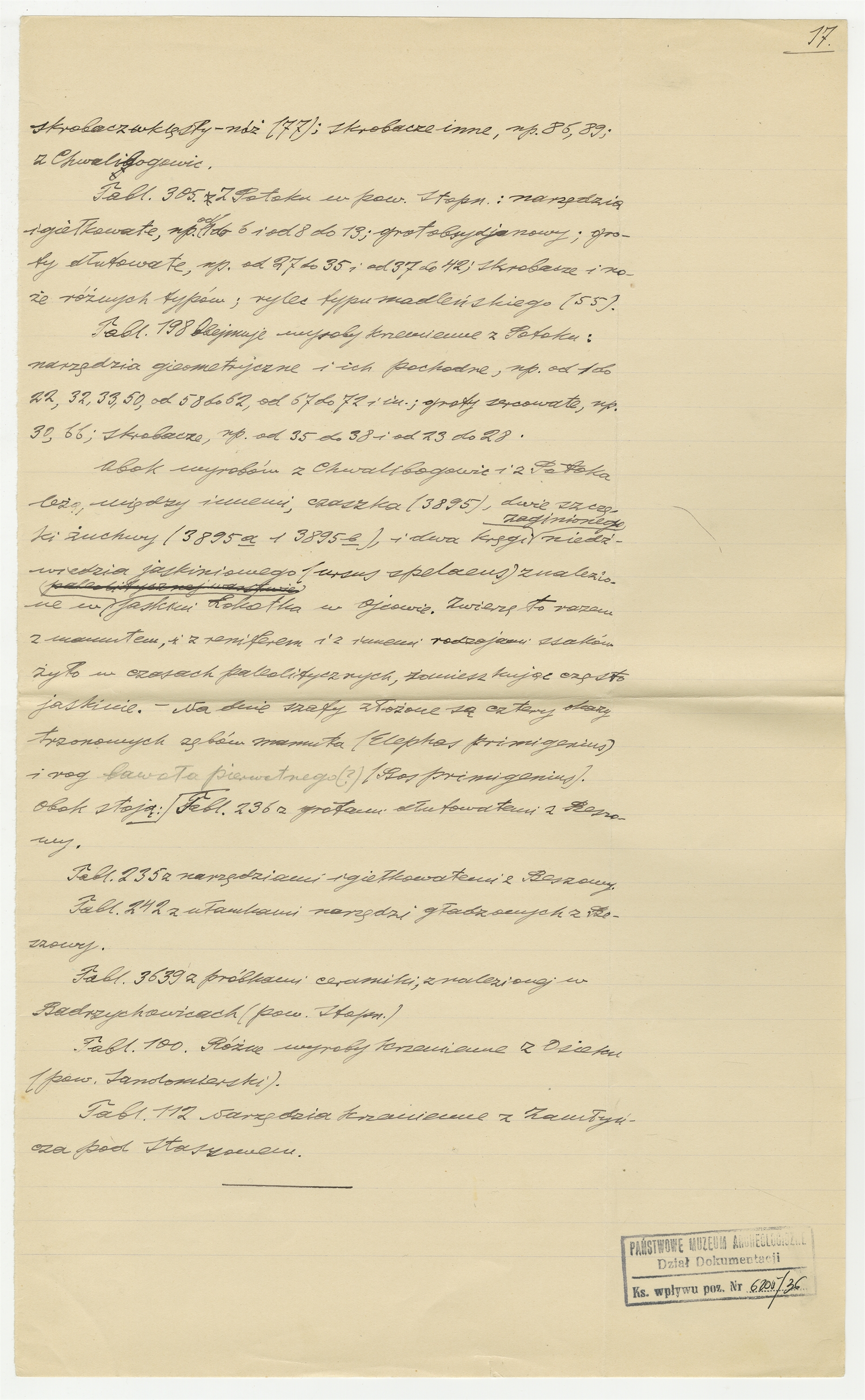 Rękopis - notatki Stefana Krukowskiego - "Materiały do Katalogu Muzealnego" - szafa N4. Strona 17