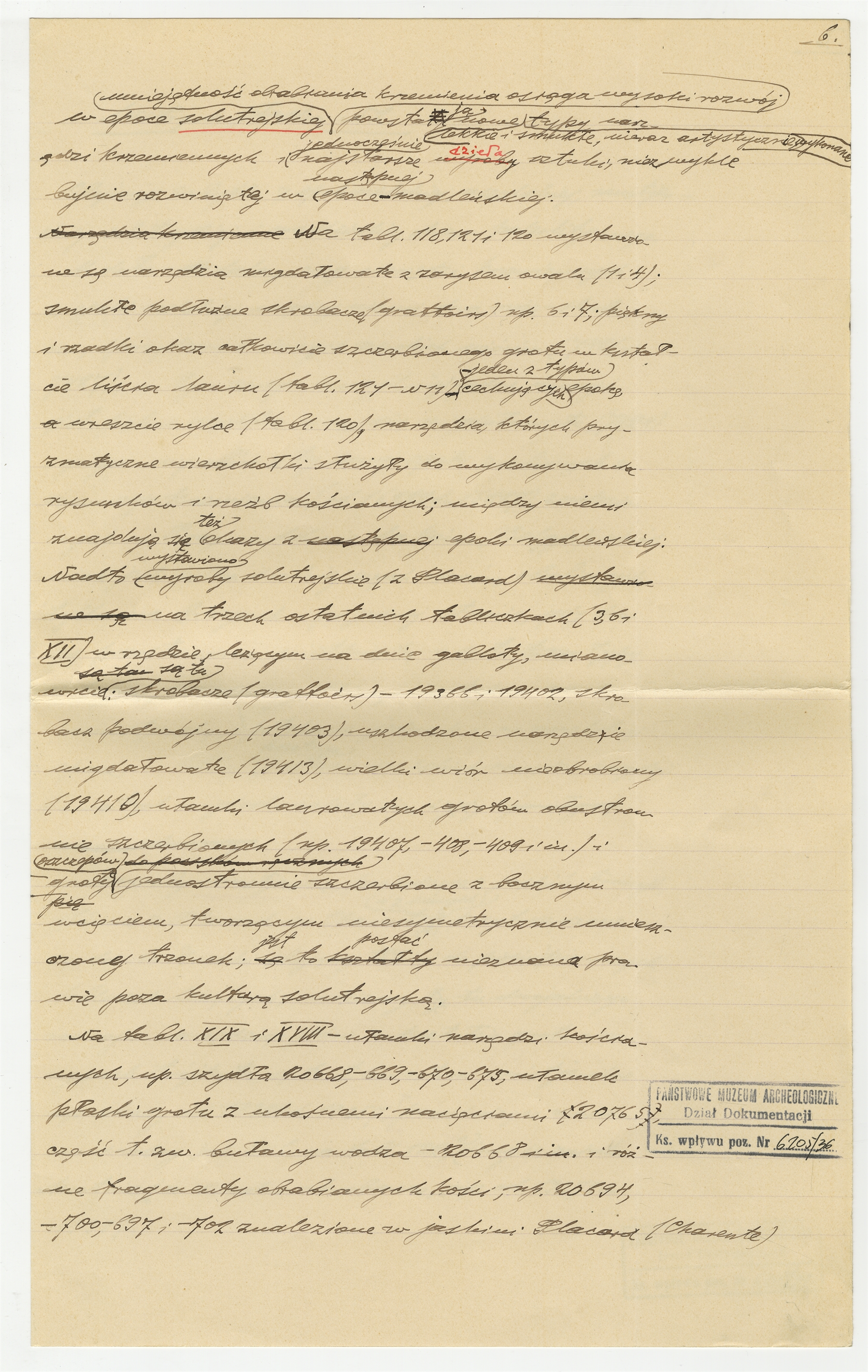 Rękopis - notatki Stefana Krukowskiego - "Materiały do Katalogu Muzealnego" - witryna płaska N2 (cd). Strona 6