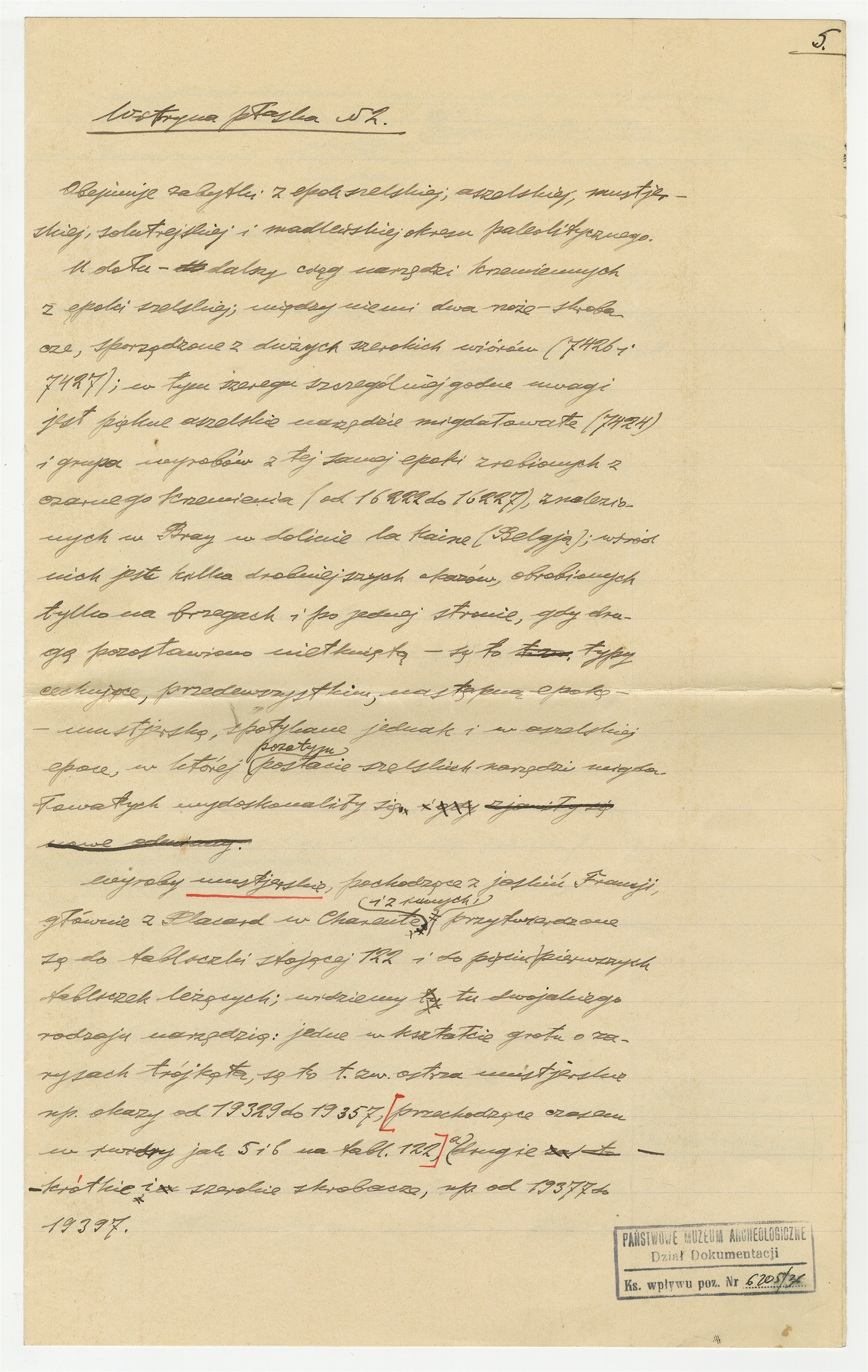 Rękopis - notatki Stefana Krukowskiego - "Materiały do Katalogu Muzealnego" - witryna płaska N2. Strona 5