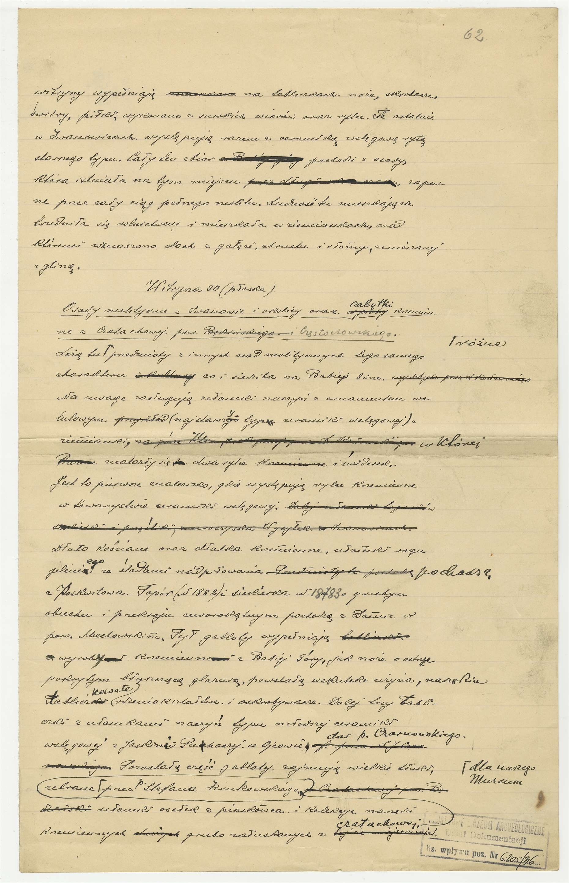 Rękopis - notatki Stefana Krukowskiego - materiały do Katalogu Muzealnego zawartości witryn - witryna 29 (cd) i witryna 30. Strona 62