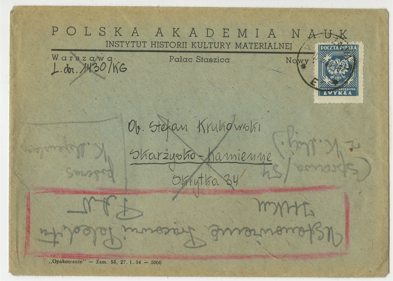 Rękopis - notatki Stefana Krukowskiego na kopercie z dn. [19]54 r. ?