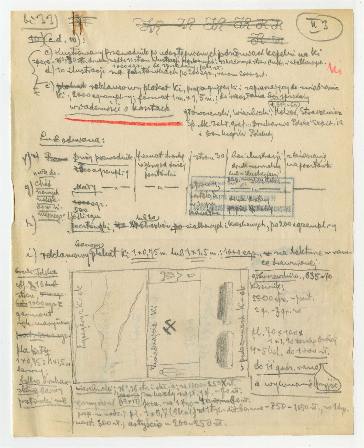 Rękopis - notatki Stefana Krukowskiego - projekt przewodnika i plakatu reklamowego dla Krzemionek