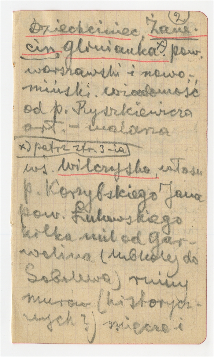 Rękopis - notatki Stefana Krukowskiego z informacjami o stanowiskach w miejscowościach Dziechciniec i Wilczyska (strona 2)