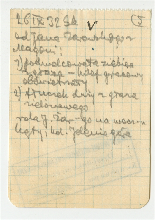 Rękopis - notatki Stefana Krukowskiego z wykazem znalezisk i nazwiskami znalazców z okresu 27 IX -13 X [19]32 roku. Strona 5