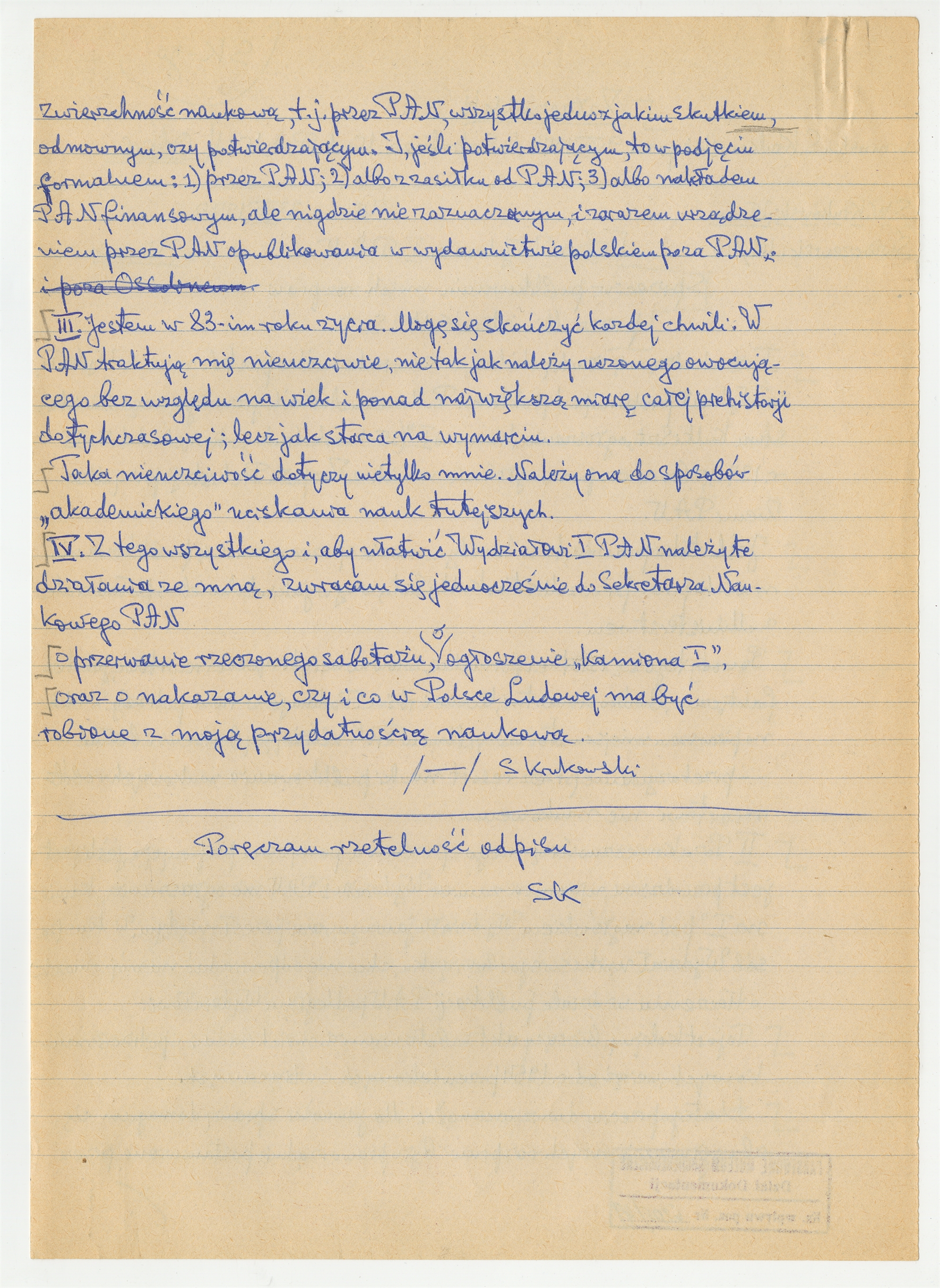 Rękopis - odpis listu (sprzeciw) Stefana Krukowskiego do Wydziału I PAN załącznik 4 z dn. 3 VIII 1972 r.