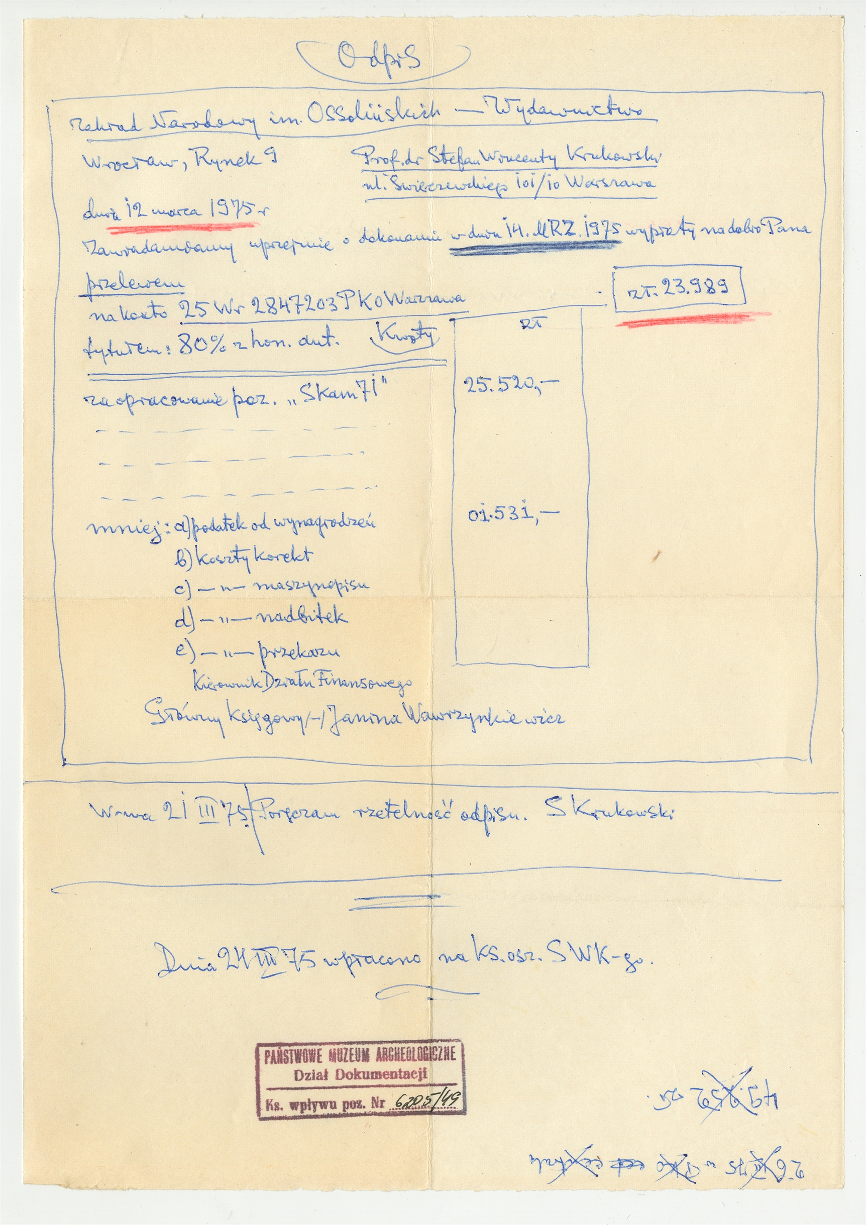 Rękopis - odpis listu Wydawnictwa Ossolineum do Stefana Krukowskiego z dn. 12 III 1975 r.