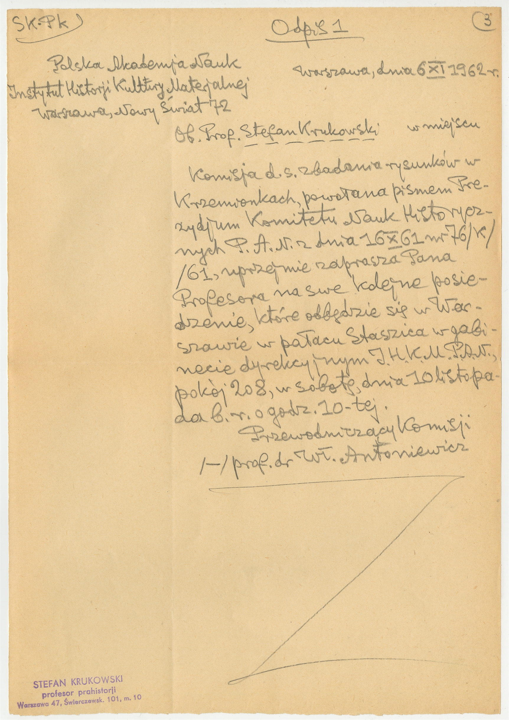 Rękopis - odpis pisma z PAN do Stefana Krukowskiego z dnia 6 XI 1962 roku - strona 3