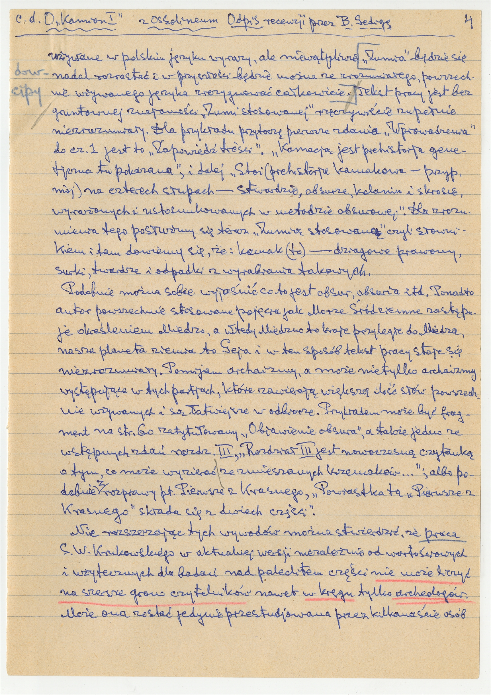 Rękopis - odpis recenzji B. Gedigi (cd)