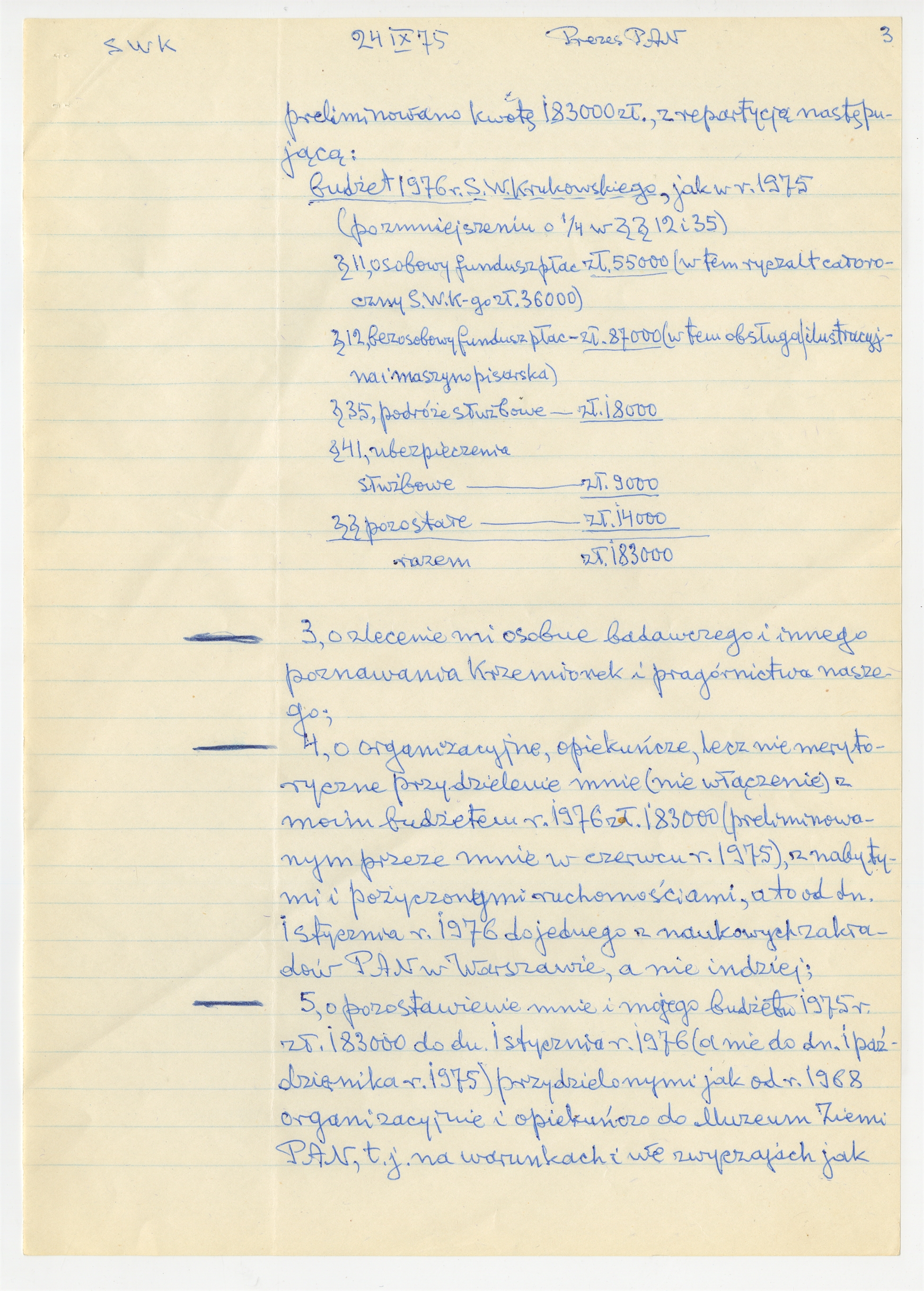 Rękopis - odwołanie Stefana Krukowskiego z dnia 24 IX 1975 roku do Prezesa PAN. (załącznik listu Prezesa PAN do Stefana Krukowskiego z dnia 30 września 1975) - strona 3 - wnioski (cd)