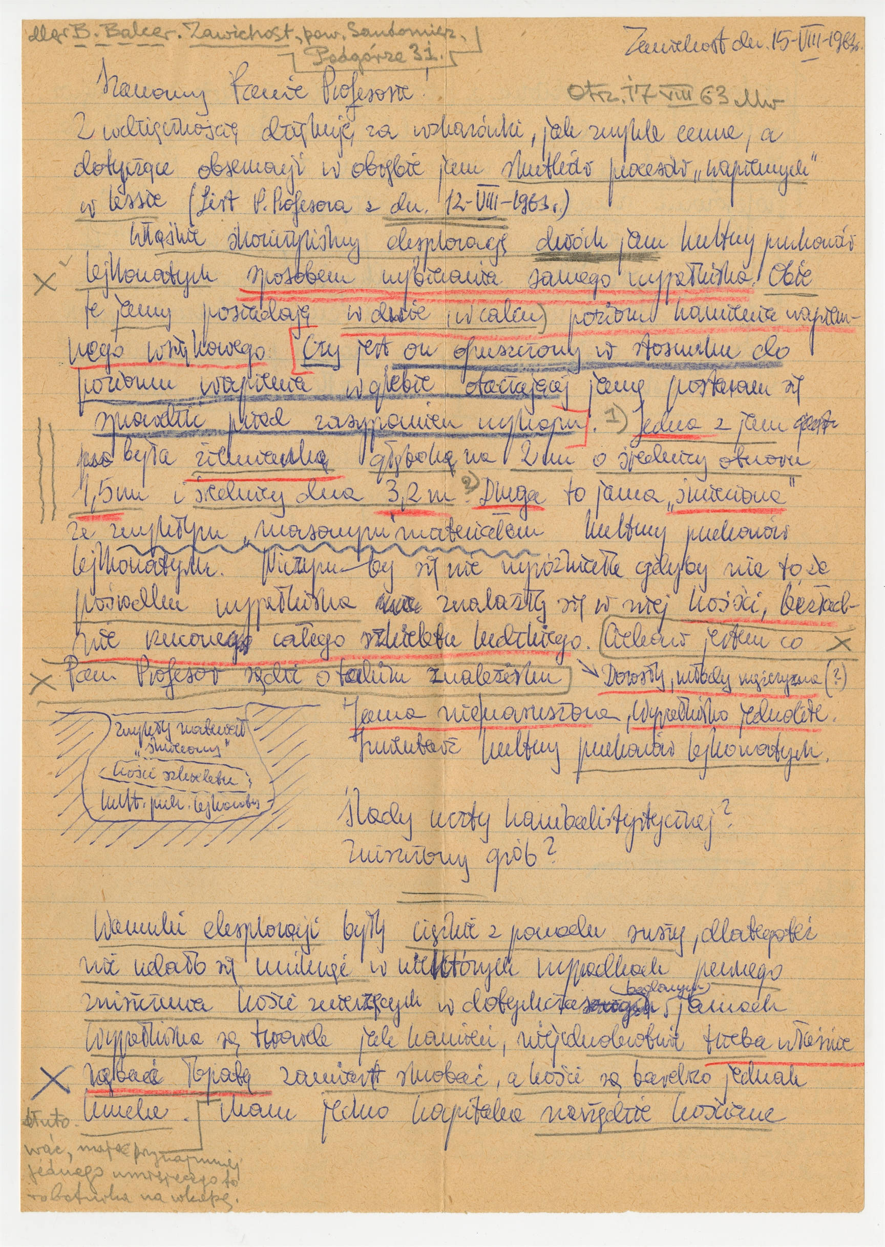 Rękopis pisma B. Balcera z 15 VIII 1963 do prof. Stefana Krukowskiego wraz z odręcznymi notatakami profesora