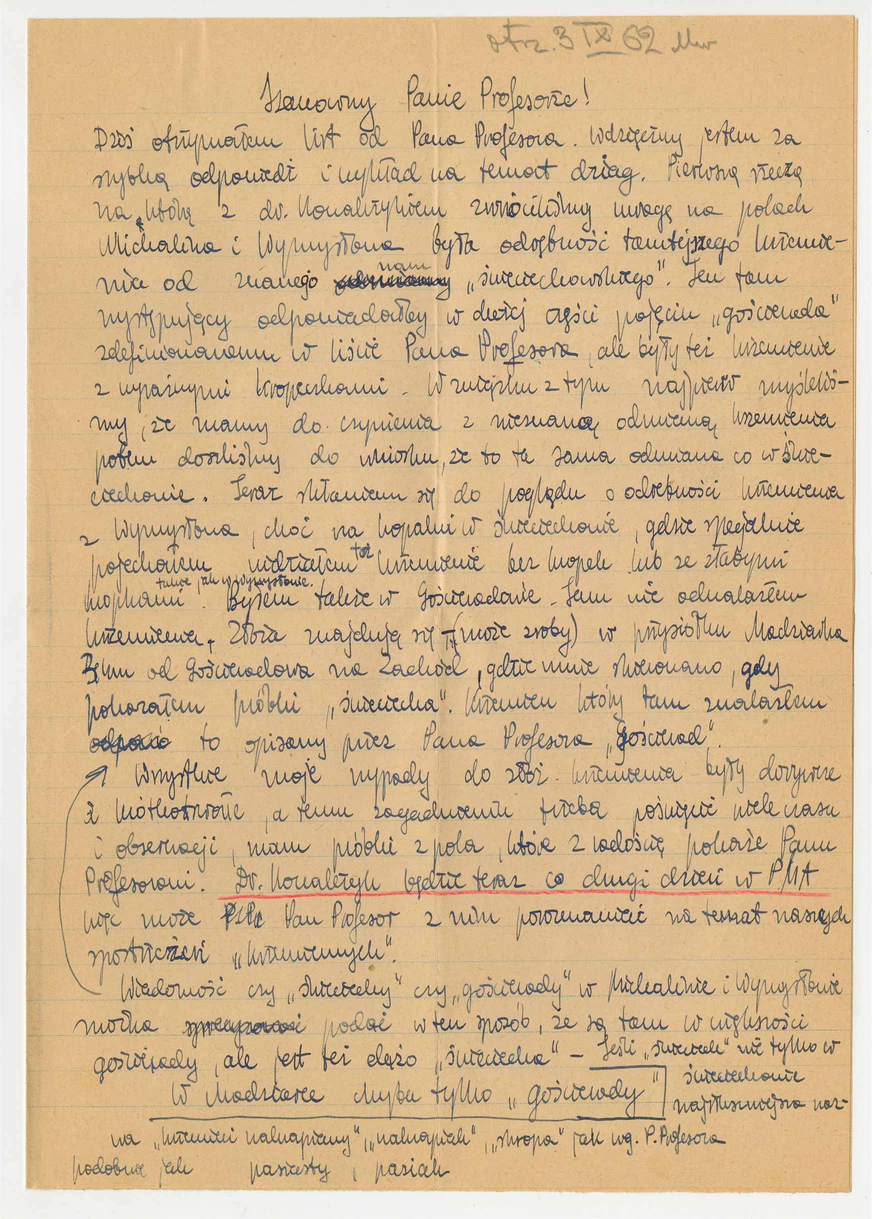 Rękopis pisma Bogdana Balcera z 30 VIII 1962 skierowanego do prof. Stefana Krukowskieg