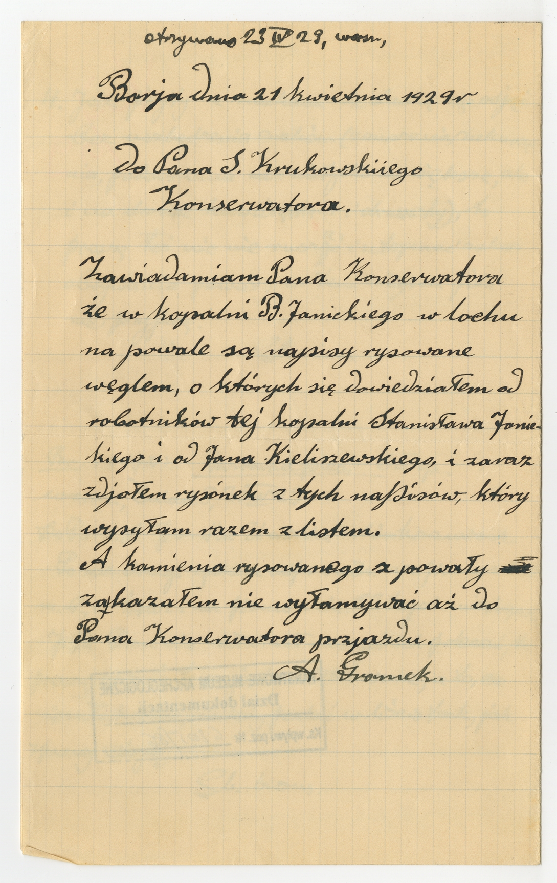 Rękopis pisma A. Gromka "Do Pana S. Krukowskiego Konserwatora" z dnia 23 kwietnia [19]29 r.