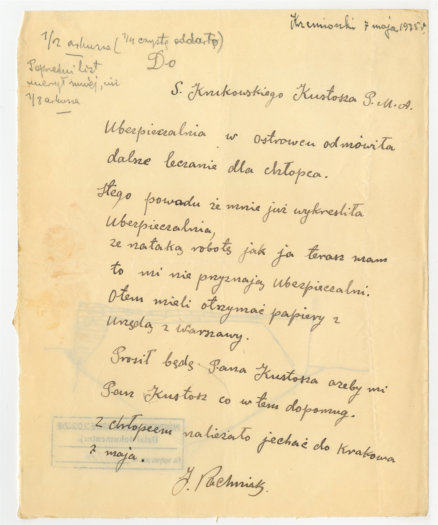 Rękopis pisma J. Pachniaka do Stefana Krukowskiego z dnia 7 maja 1935 r.