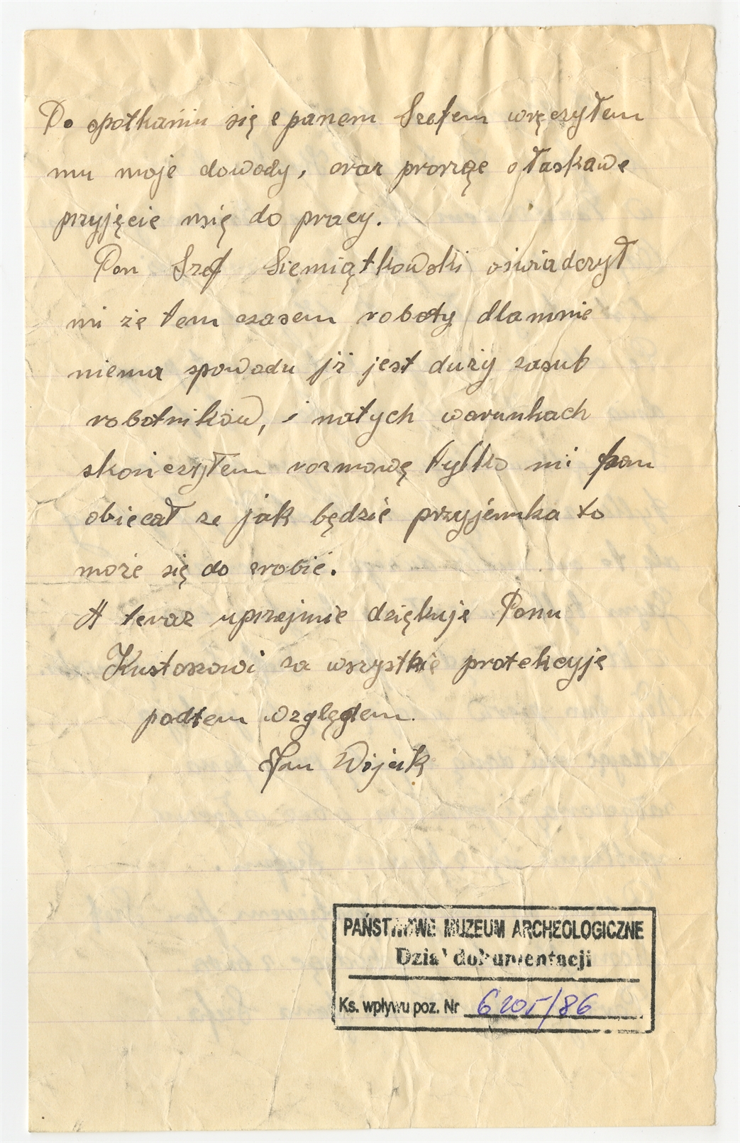 Rękopis pisma Jana Wójcika "Do Pana Kustosza S. Krukowskiego …" z dnia 22 grudnia 1934 r. (cd)