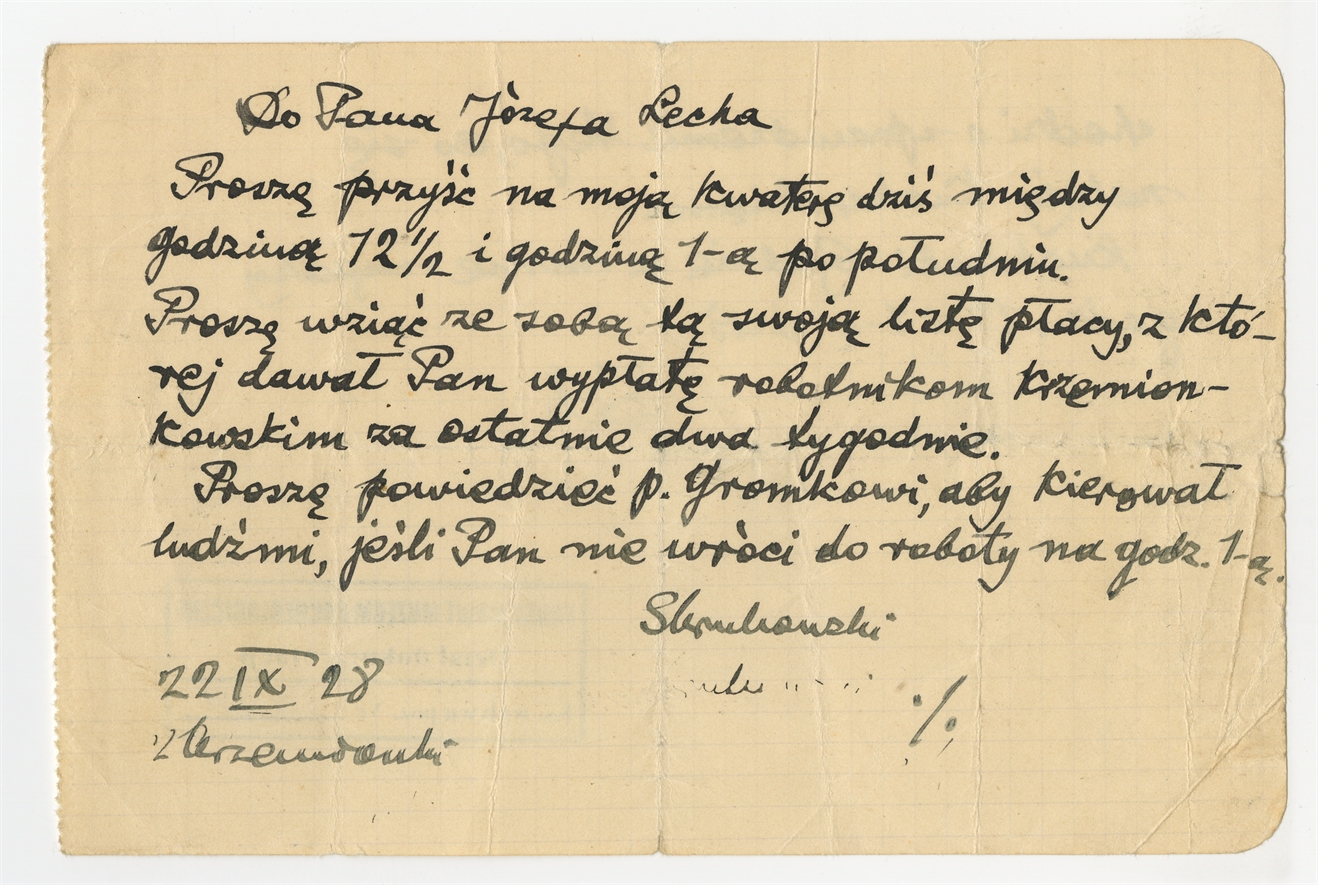 Rękopis pisma prof. Stefana Krukowskiego do Józefa Lecha z dnia 22 IX [19]28 r.
