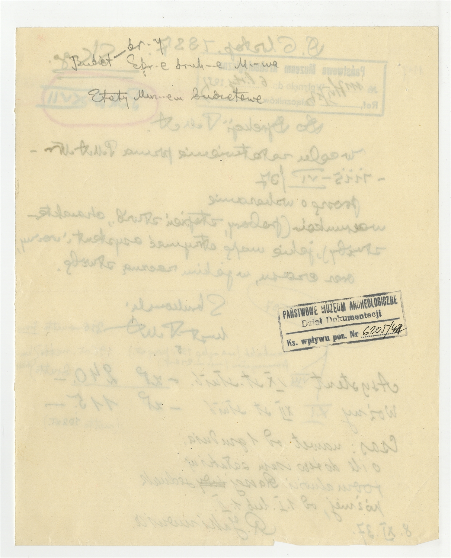 Rękopis pisma prof. Stefana Krukowskiego z dn. 6 listopada 1937 r. (PMA Nr 1117-VI/37) skierowanego do Dyrekcji PMA wraz z odręczna odpowiedzią R. Jakimowicza z dn. 8 XI [19]37 r. (cd)