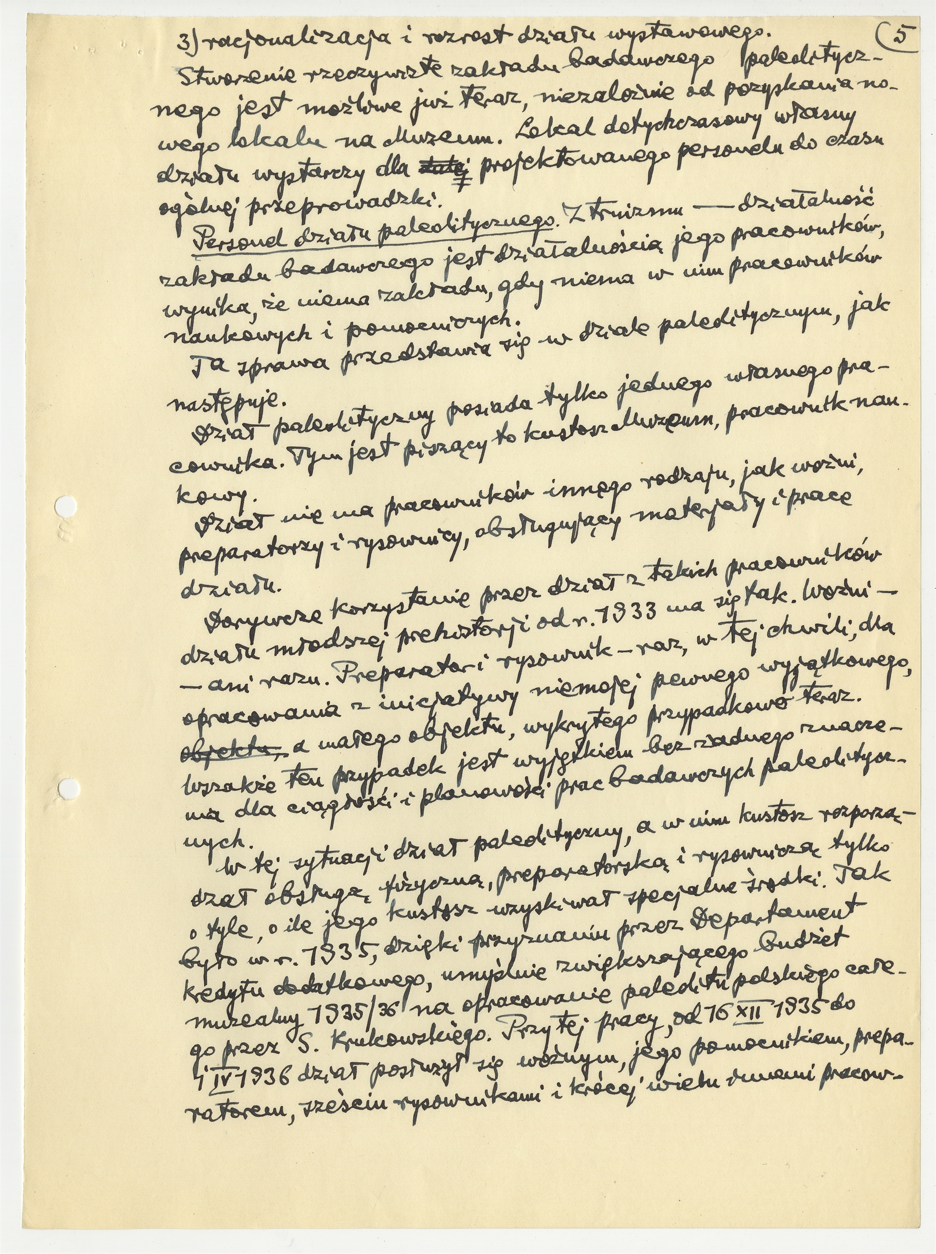 Rękopis pisma prof. Stefana Krukowskiego z dnia 29 kwietnia 1937 skierowanego do "Departamentu IV Ministerstwa Wyznań Rel. i Oświecenia Publicznego" - "Wniosek o dwu stałych pracowników asystenta i woźnego dla działu paleolitycznego w Państw. Muzeum Archeologicznem" (cd)