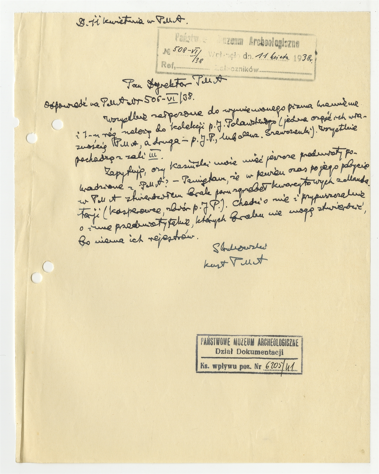 Rękopis pisma Stefana Krukowskiego z 11 kwietnia [1938 r.] skierowanego do Dyrektora PMA (Pismo Nr 508-VI/38)
