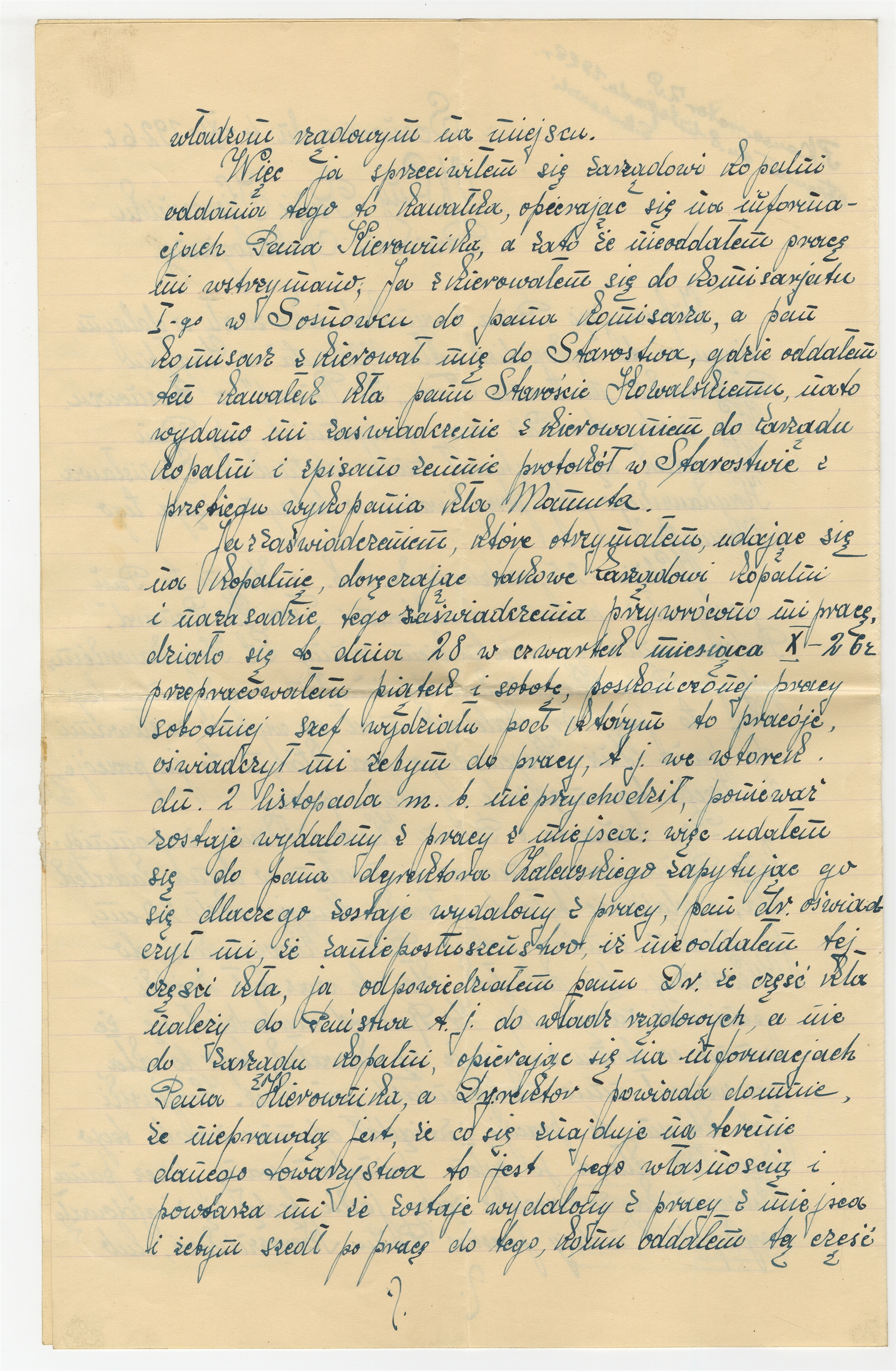 Rękopis - pismo S. Krzykowskiego do Pana Kierownika Pracowni Archeologicznej Sosnowiec 4 XI 1926 r. z adnotacją prof. Krukowskiego o wpłynięciu pisma - "…władzom rządowym na miejscu..."