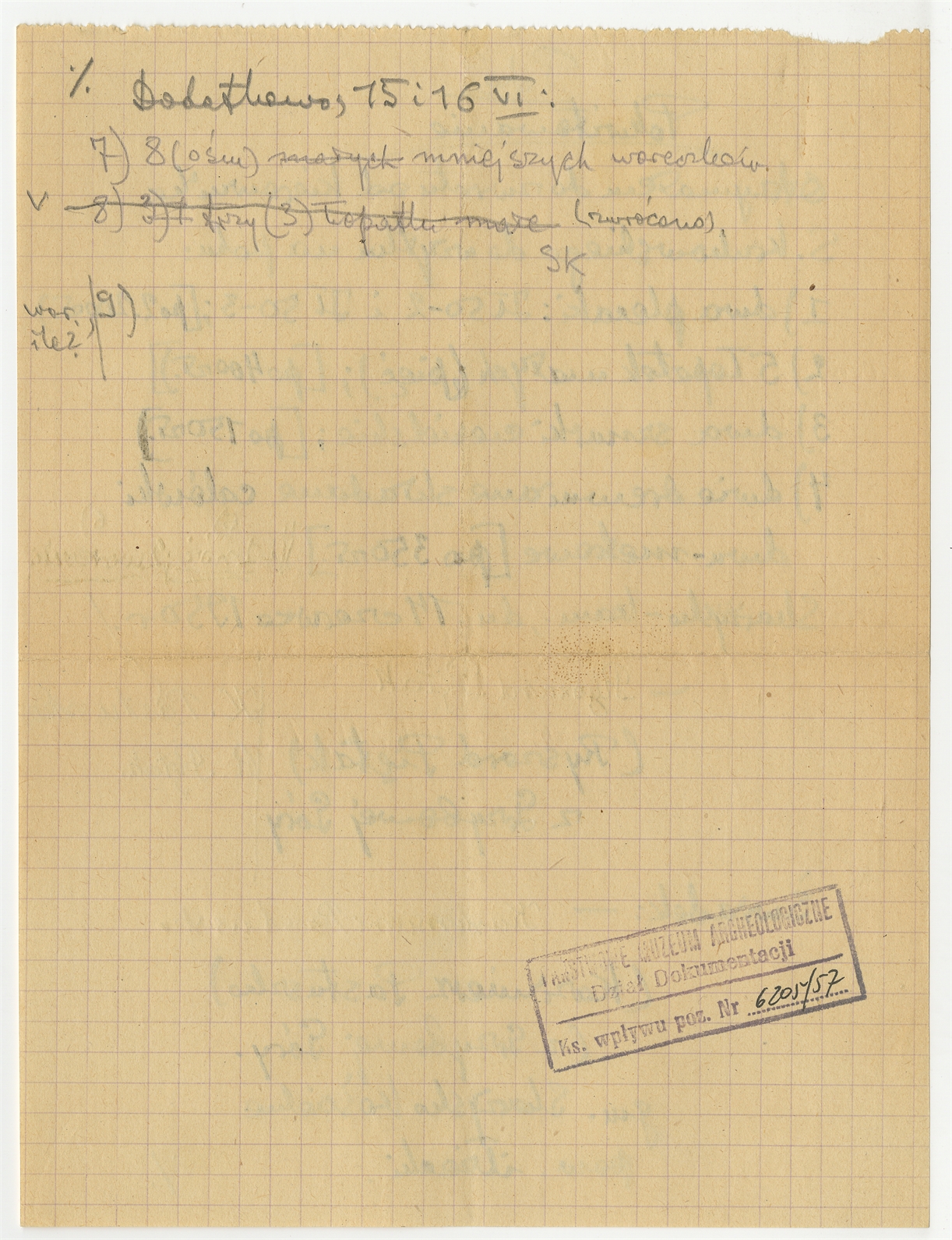 Rękopis - pokwitowanie sprzętu polowego z dnia 14 czerwca 1950 roku podpisane przez Ryszarda Piętaka oraz Kazimierza Pastuszko (cd -"dodatkowo 15 i 16 VI...")