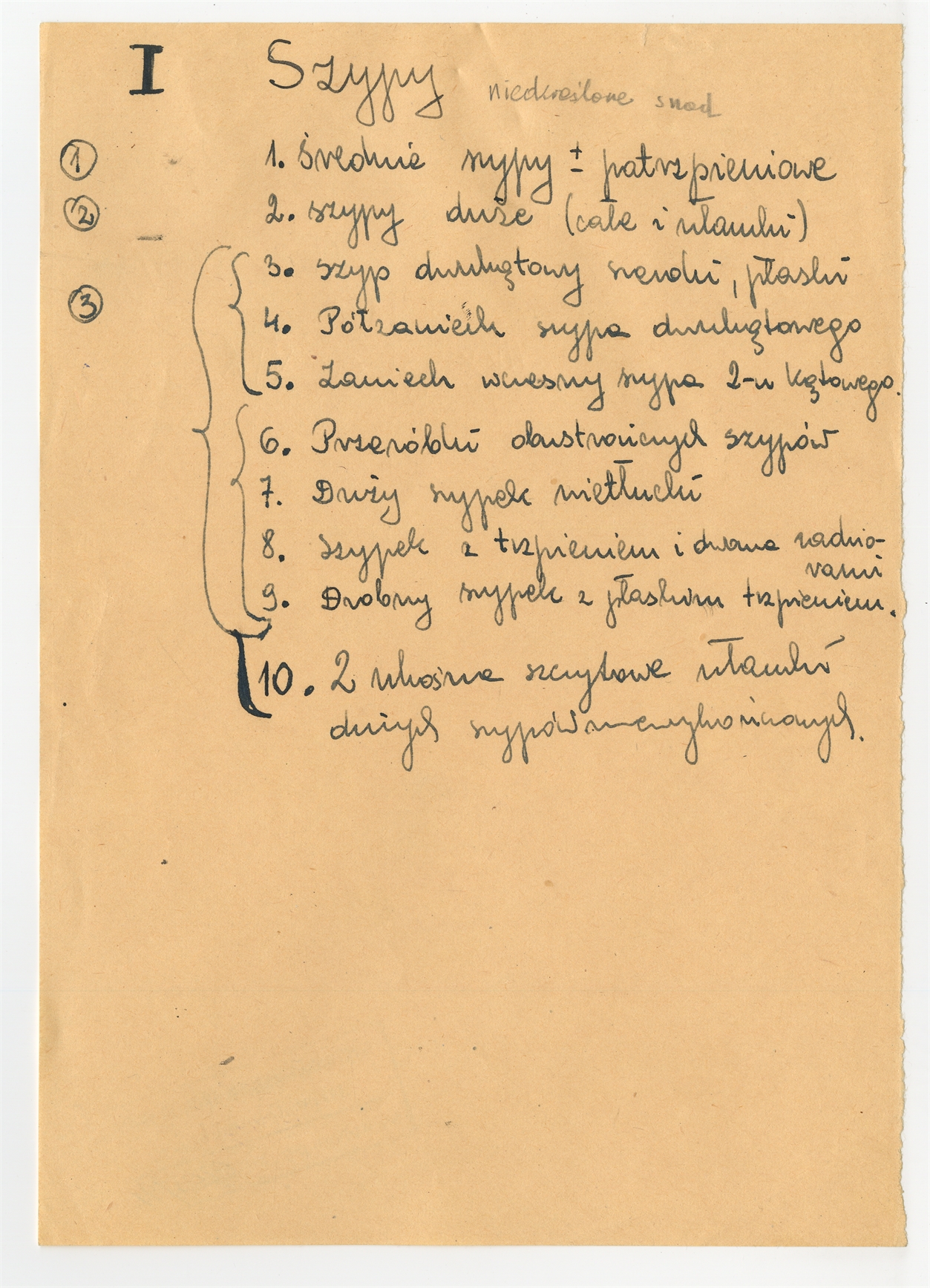 Rękopis pracy „Mirohoszcza” zawierającej typologię form z dokładniejszym ich podziałem str. 2: Szypy