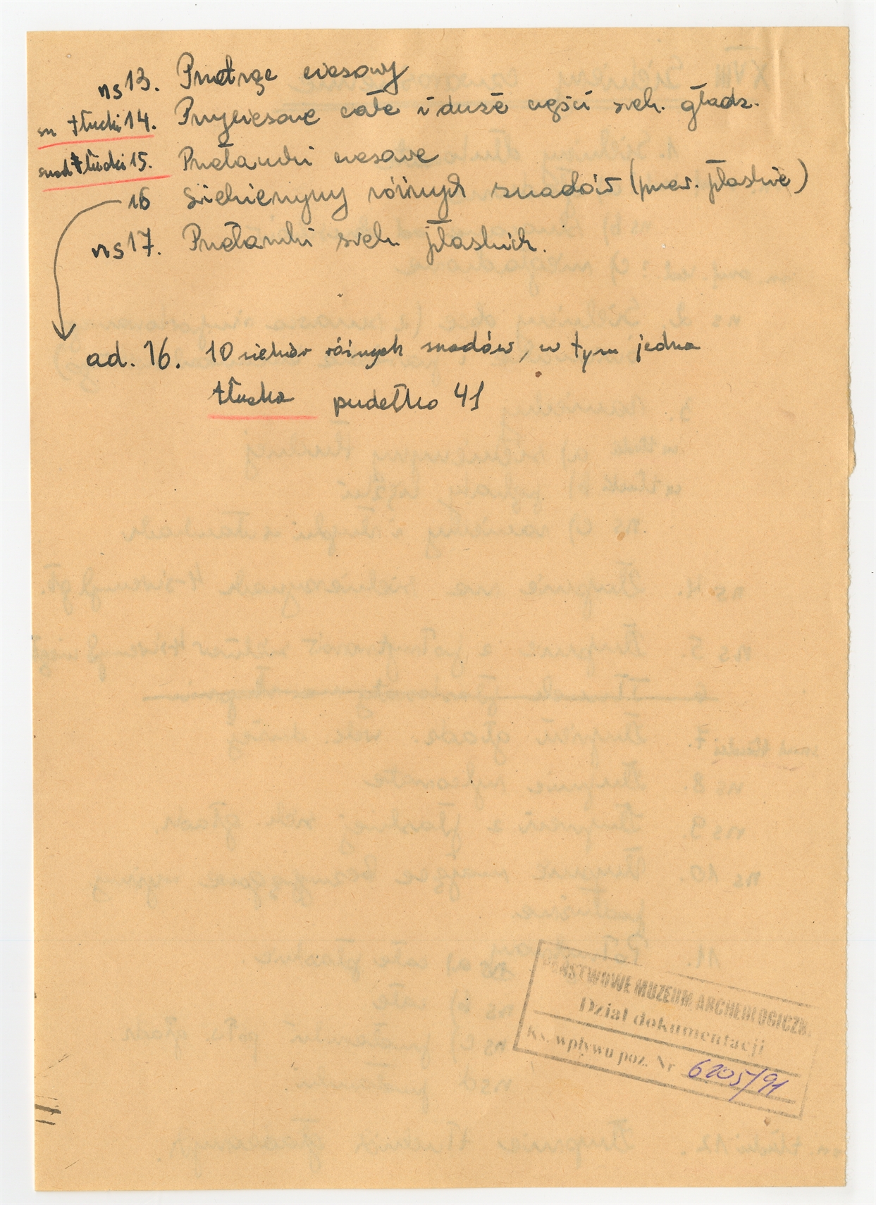 Rękopis pracy „Mirohoszcza” zawierającej typologię form z dokładniejszym ich podziałem str. 22: Siekiery czworościenne cd.