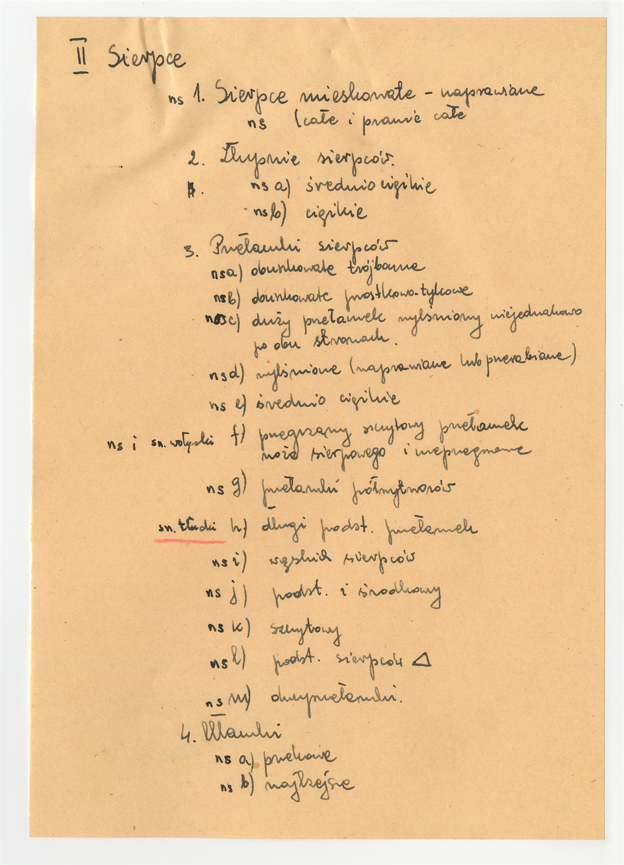 Rękopis pracy „Mirohoszcza” zawierającej typologię form z dokładniejszym ich podziałem str. 3: Sierpce