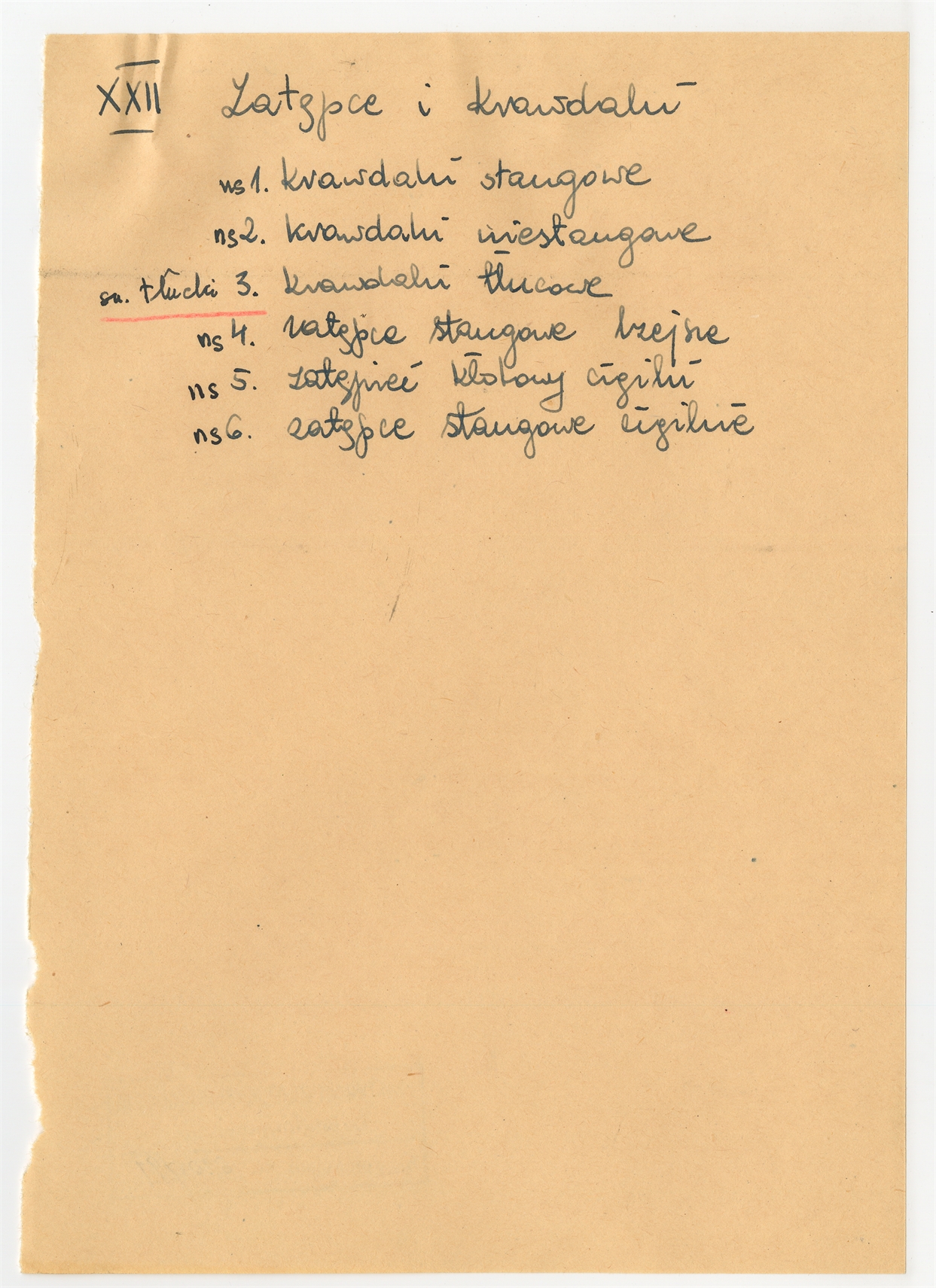 Rękopis pracy „Mirohoszcza” Zawierającej typologię form z dokładniejszym ich podziałem str. 33: Zatępce i Krawdaki