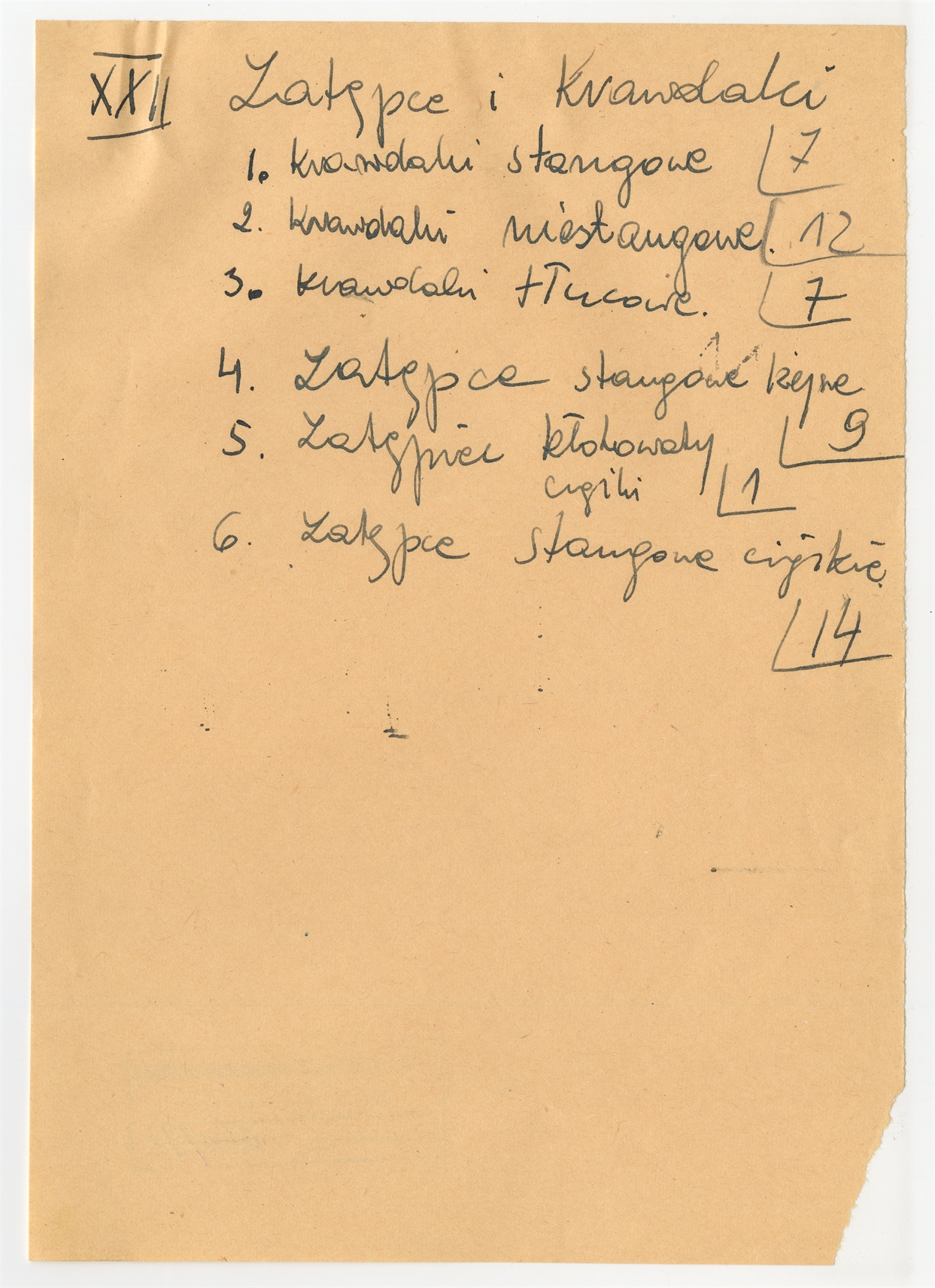 Rękopis pracy „Mirohoszcza” Zawierającej typologię form z dokładniejszym ich podziałem str. 34: Zatępce i Krawdaki (wersja poprawiona)