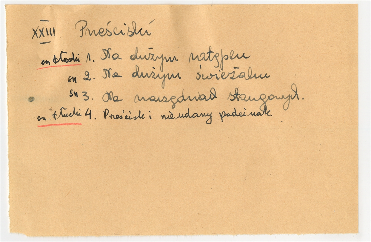 Rękopis pracy „Mirohoszcza” Zawierającej typologię form z dokładniejszym ich podziałem str. 35: prześciski