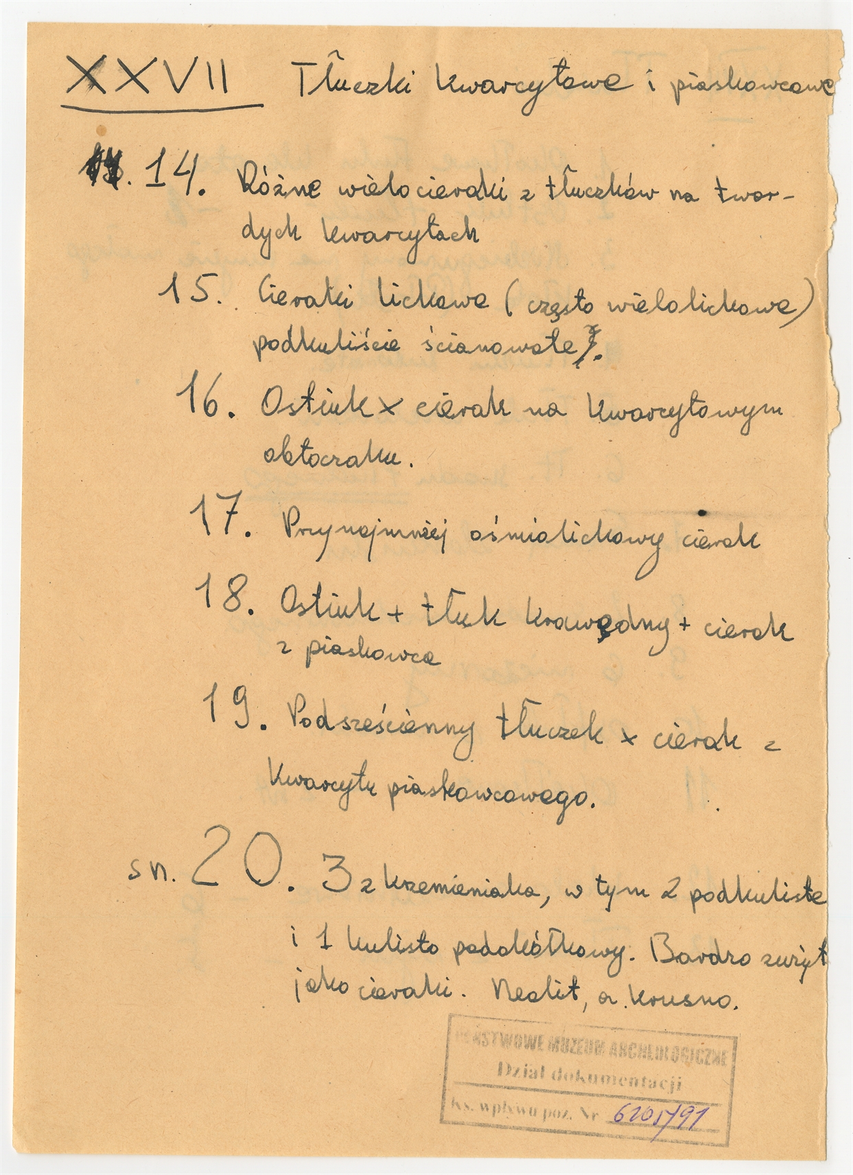 Rękopis pracy „Mirohoszcza” Zawierającej typologię form z dokładniejszym ich podziałem str. 41: Tłuczki kwarcytowe i piaskowcowe
