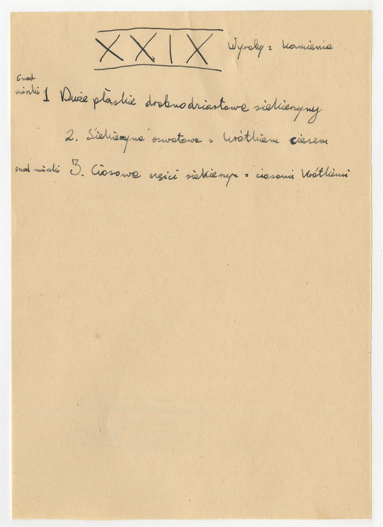 Rękopis pracy „Mirohoszcza” Zawierającej typologię form z dokładniejszym ich podziałem str. 43: Wyroby z kamienia.
