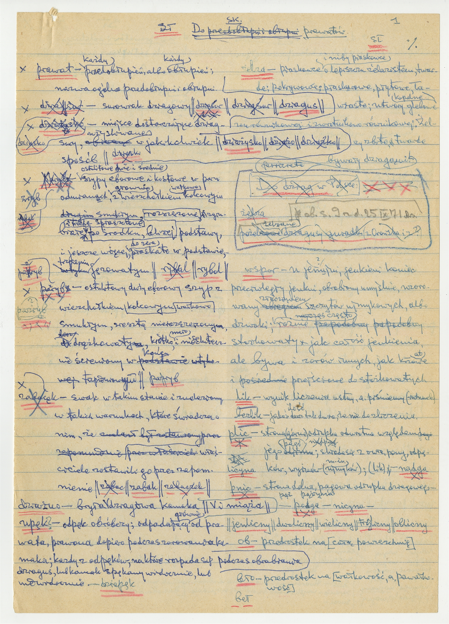Rękopis pracy prof. Stefana Krukowskiego pt.: "Do prawatów i wólskiego" - słownik