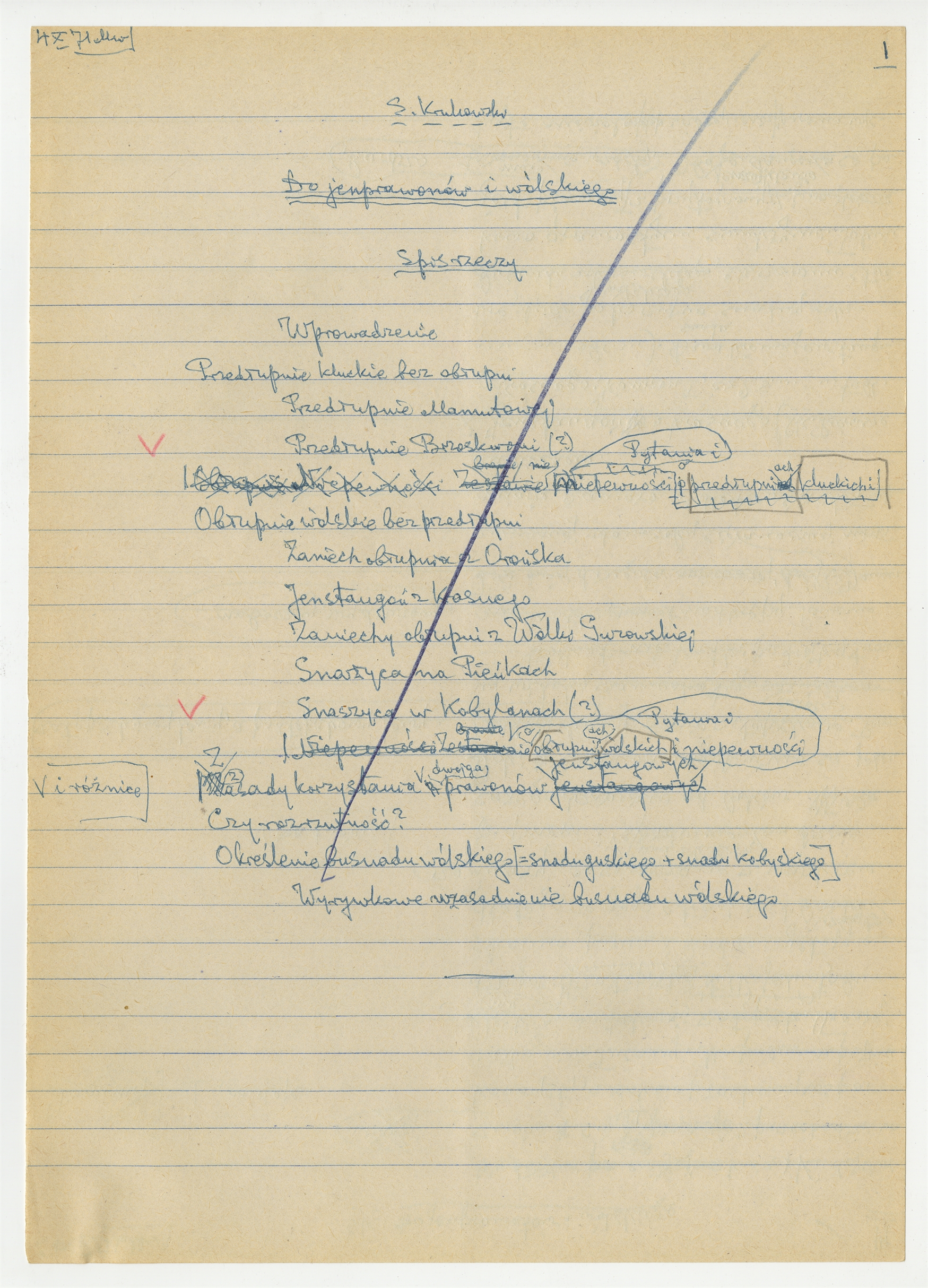 Rękopis pracy prof. Stefana Krukowskiego pt.: "Do prawatów i wólskiego" - Spis rzeczy (cd)