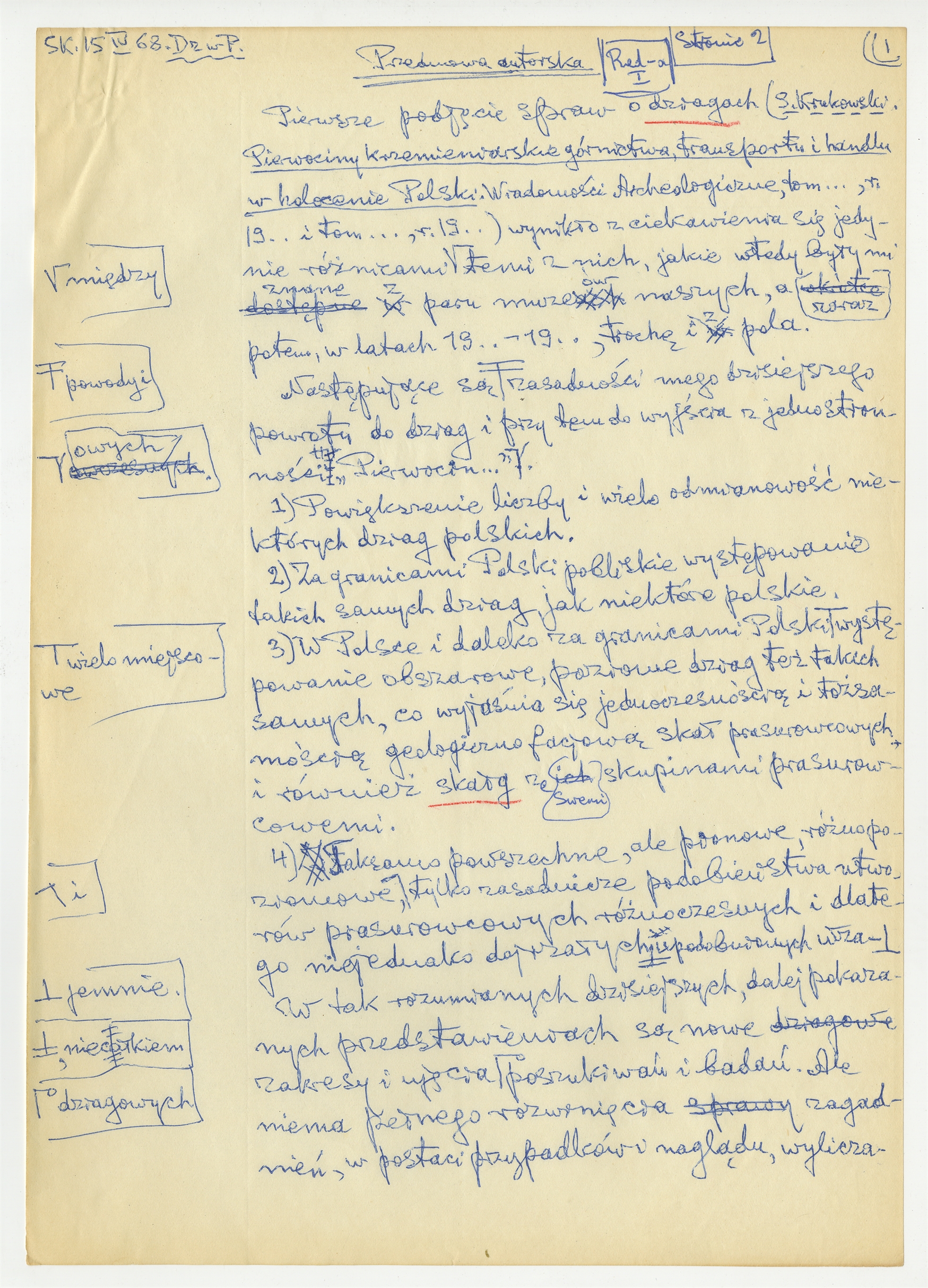 Rękopis pracy prof. Stefana Krukowskiego pt.: "Dziagi w Polsce" - Przedmowa autorska -Redakcja I