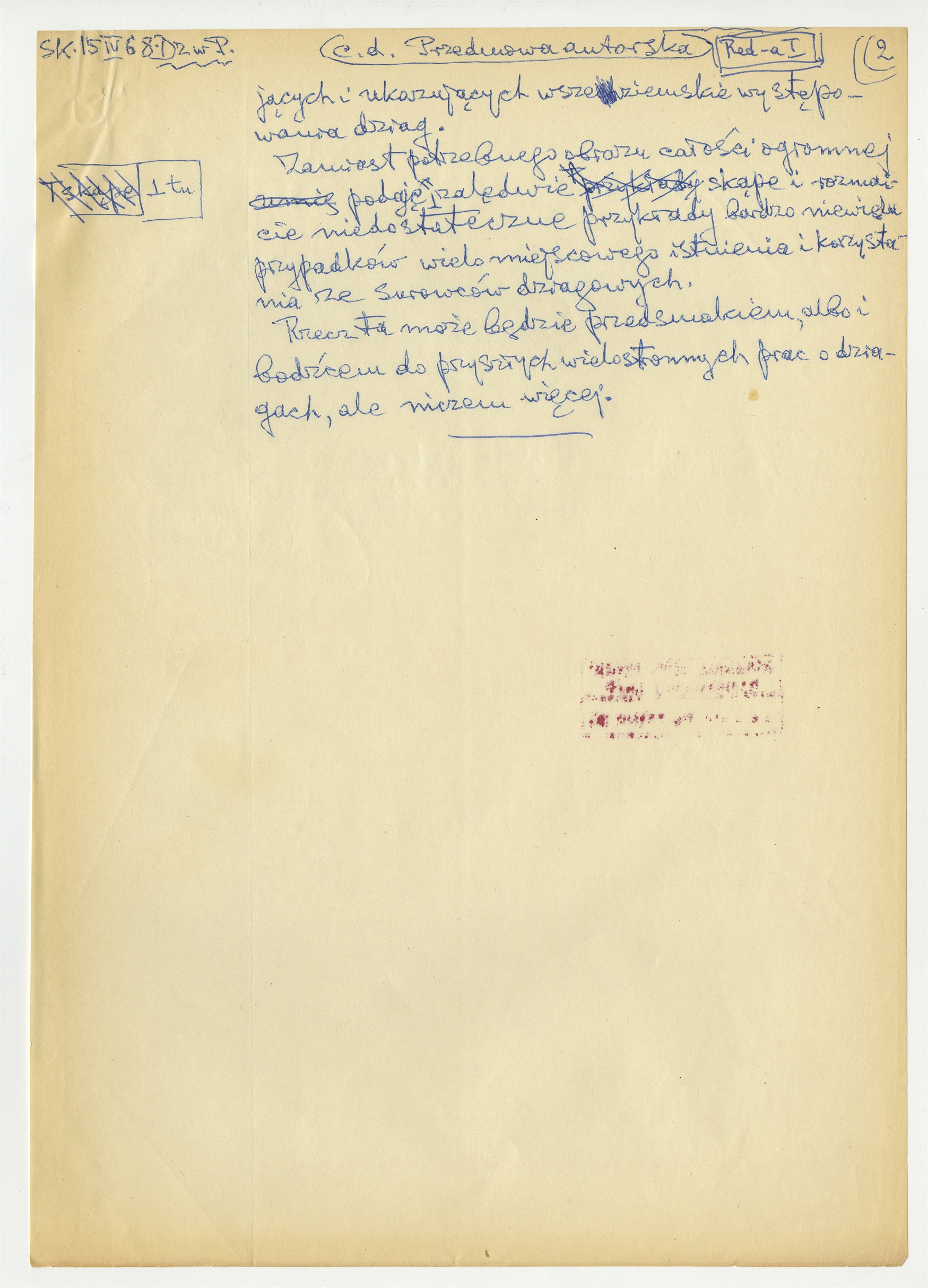 Rękopis pracy prof. Stefana Krukowskiego pt.: "Dziagi w Polsce" - Przedmowa autorska -Redakcja I (cd)