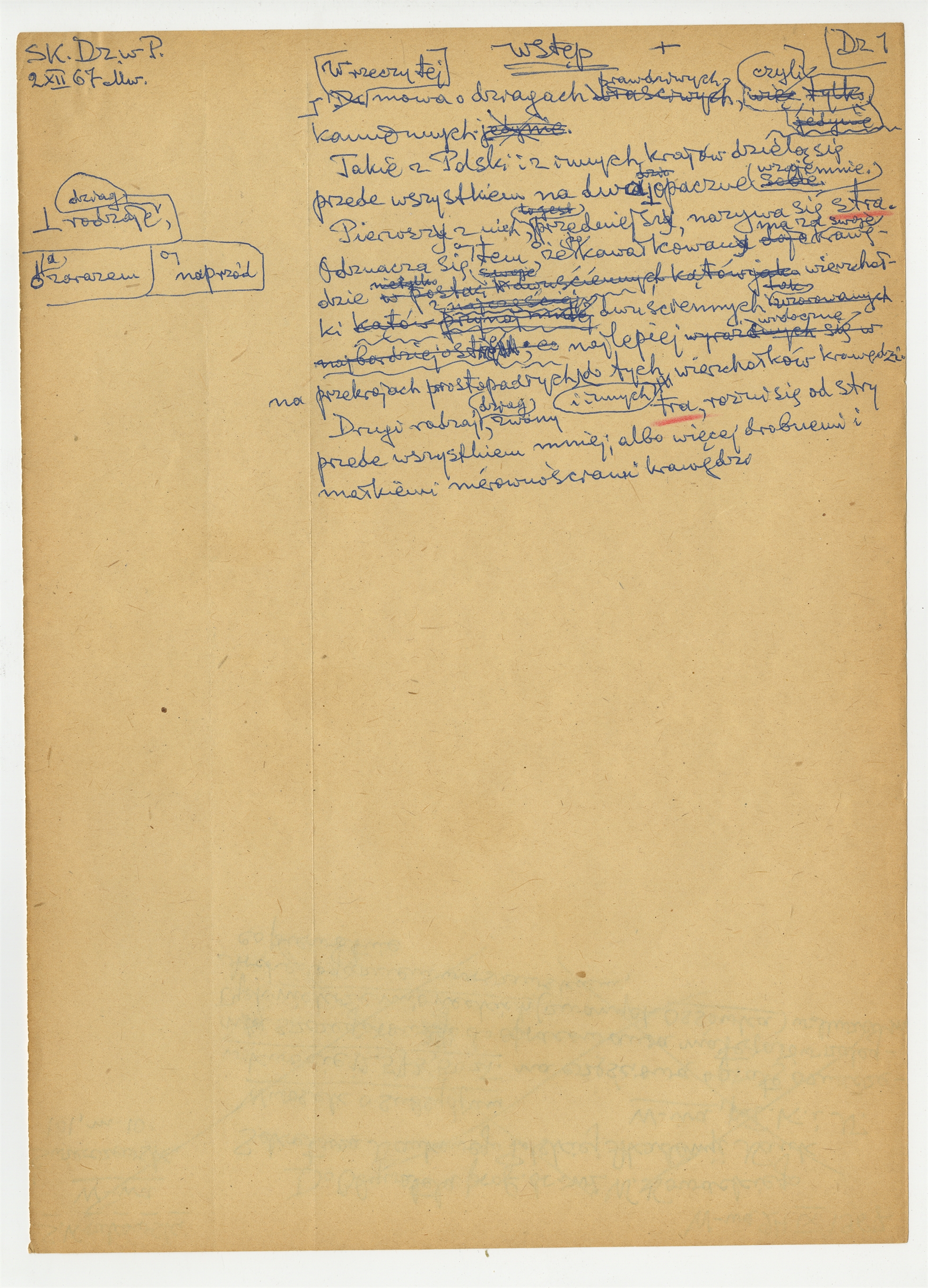 Rękopis pracy prof. Stefana Krukowskiego pt.: "Dziagi w Polsce" - Wstęp - z dnia 2 XII [19]67