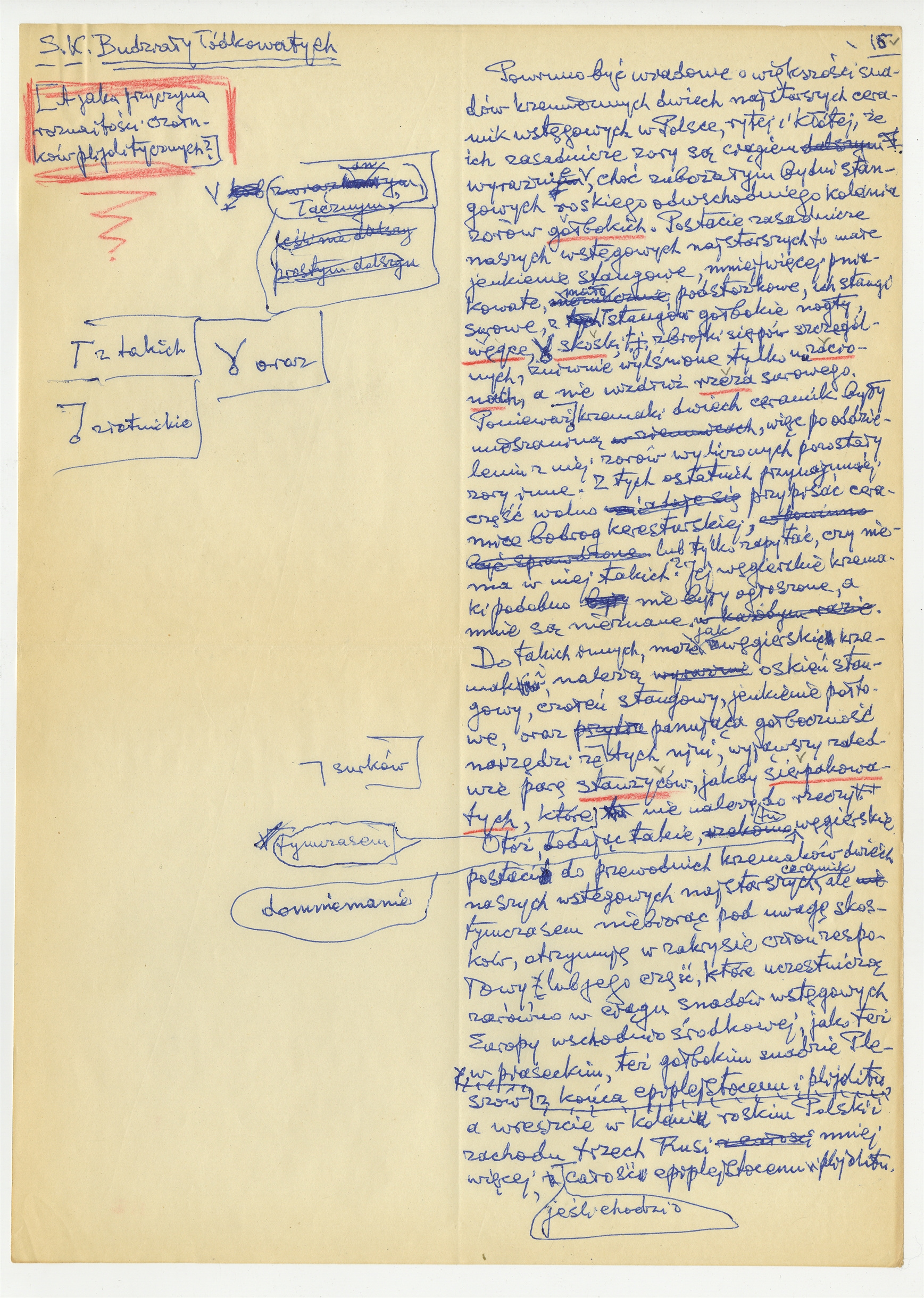 Rękopis pracy pt. "Budziały łódkowatych" - strona 16: "(…) Powinno być wiadome o większości suddów krzemiennych (…)"