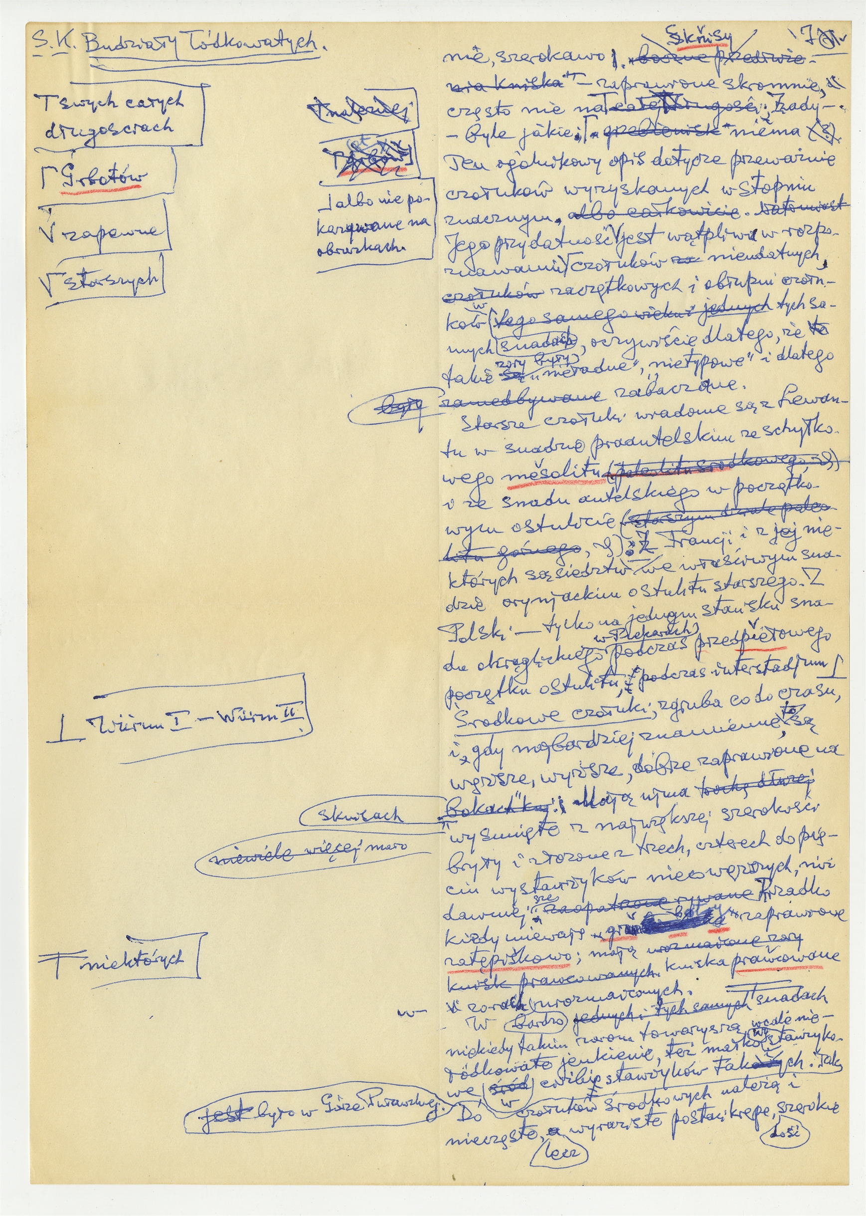 Rękopis pracy pt. "Budziały łódkowatych" - strona 7: "(…) szerokawo. Sknisy zaprawione skromnie (…)"