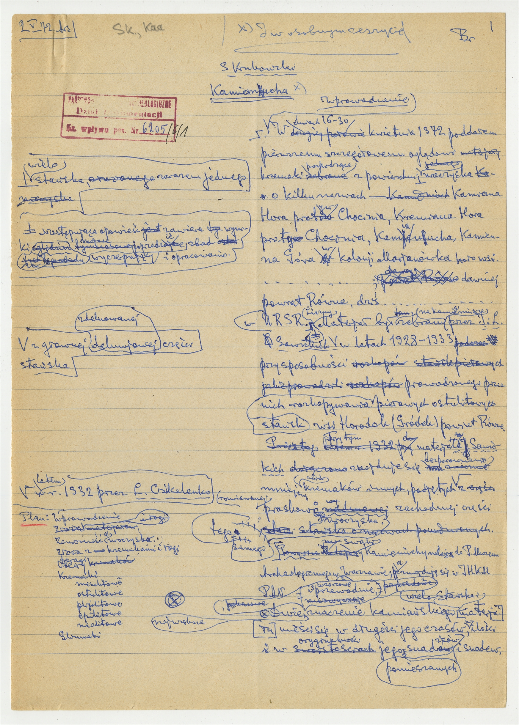 Rękopis pracy pt. "Kamianucha" - strona 1: "Wprowadzenie" 2 V [19]72