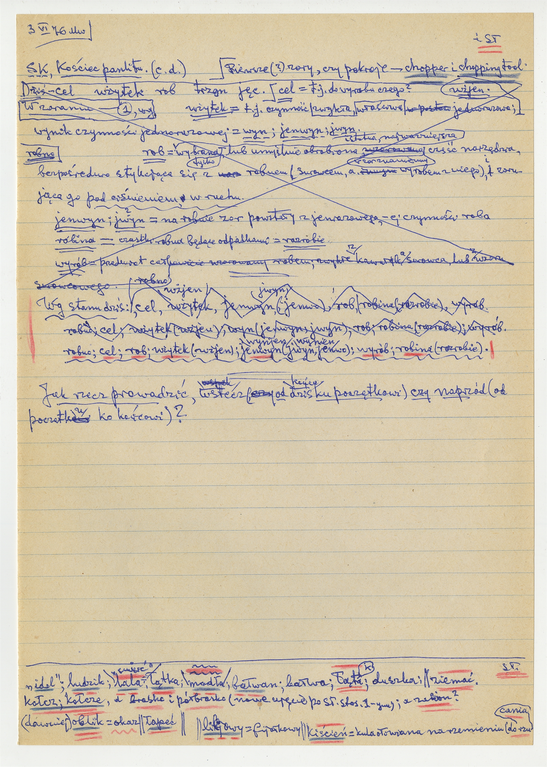 Rękopis pracy pt. "Kościec panlitu" - strona 11: "Pierwsze (?) zory czy pokroje (…) 3 VI [19]76
